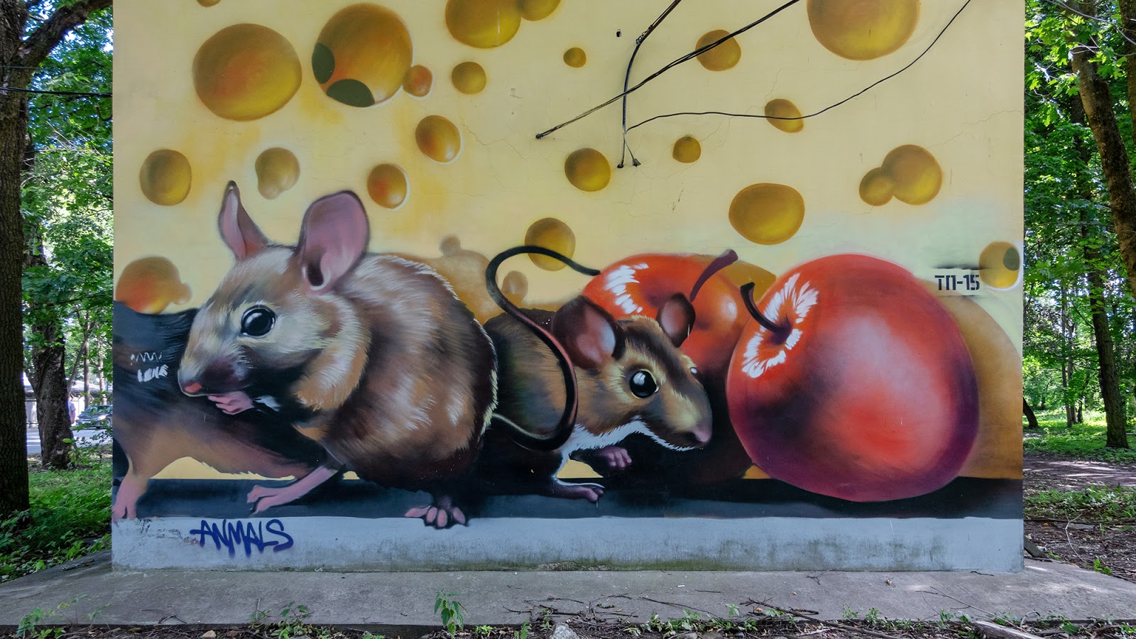 Конечно! Конечно мы не могли пройти мимо граффити))) Есть в Петрозаводске один известный типчик со сказочной фамилией Ершов, по всей видимости и определившей направление его творчества))) (внешне он, к слову, ну чисто Горшок... пардон, Михаил Горшенев из группы "Король и Шут"... такой же беззубый, и похож на наркомана)... Но сказочные росписи мы стараемся оставить на "годика через три", когда к нам присоединится в поездках наша внучона, поэтому пока осмотрим творения Андрея Птицына... например, "Лесные ягоды":