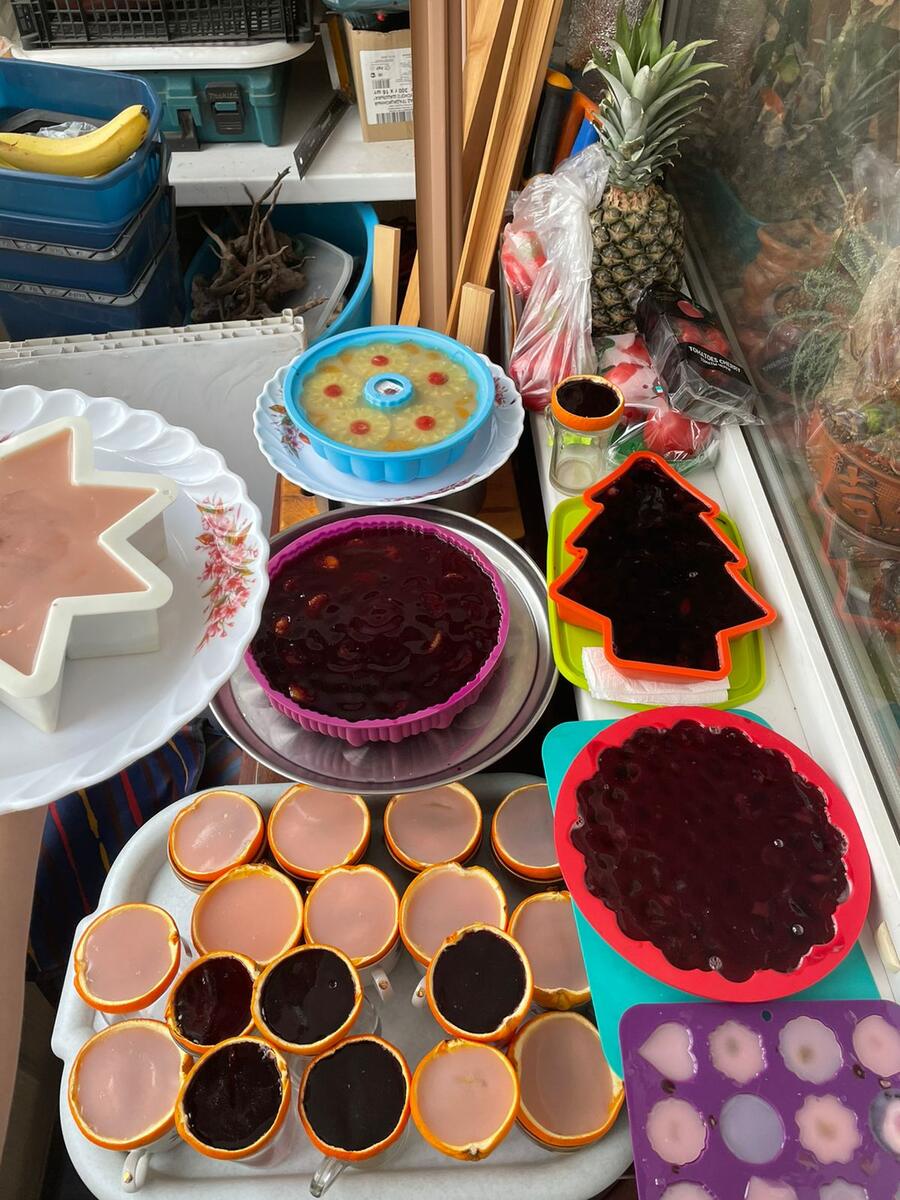 А  у  меня  при  изготовлении  8  тортиков ,  20  половинок  апельсинов  и  желейных  конфет  не  осталось  ничего ,  ушло  всё ,  даже  чуть  не  хватило .  Сам  в  шоке.
