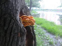 Промокашка, гриб рядом с зажигалкой - чешуйчатка гаревая, ложка манной каши - фулиго гнилостный.