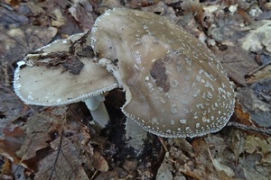 Если честно, многообразие мухоморов в наших южных лесах поражает... И растут часто все вперемешку-не поймешь один вид или уже другой. Поэтому фотографируешь все подряд, а потом по фото уже пытаешься разобраться. Так мне удалось сначала обнаружить и опознать  симпатичный мухомор- Мухомор шероховатый или мухомор Франше  (Amanita franchetii). Теперь я его уже узнаю и в лесу и в разном обличье.