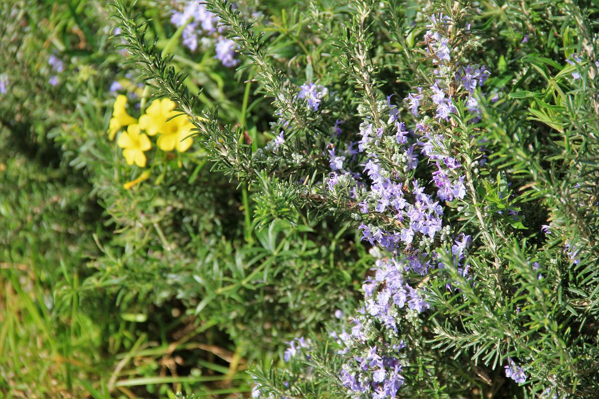 Не знаю, что это за цветочки и цветущий розмарин.