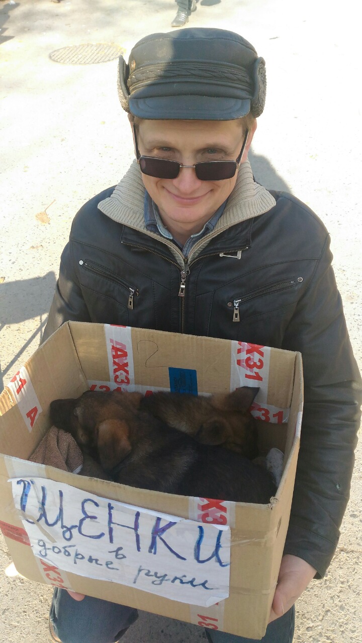 IMG_20161106_121948.jpgШли часы. Множество народу прошло мимо. Мы уже порядком устали. "Певец" тянул ВДВ-лирику уже по третьему кругу. Стайка беззлобных алкоголиков на лавочке напротив нас ушла на вторую "дозаправку". Мы начали, было, собираться домой, но подошла молодая пара. Им очень понравился темненький щенок. Жена как опытный следователь-дознаватель установила, что щенок нужен им для мамы в Матвеево-Курган. Мама имеет навык общения со щенками. Тут же выяснили телефон для обратной связи, а агентурная сеть Матвеево-Кургана получила задание проверить, действительно ли щенок будет жить по указанному адресу. Ребята отнеслись с пониманием наших действий. Из-за известных печальных новостей радоваться обретению щенком новых хозяев приходится осторожно. Но чудо  есть чудо! День прошел не зря! Теперь жизнь мохнатого комочка будет складываться в более безопасном русле. Дай Бог, все будет хорошо. А у нас еще остается шестеро созданий, которых надо уберечь от голодной и опасной жизни на улицах и в темных городских закутках.