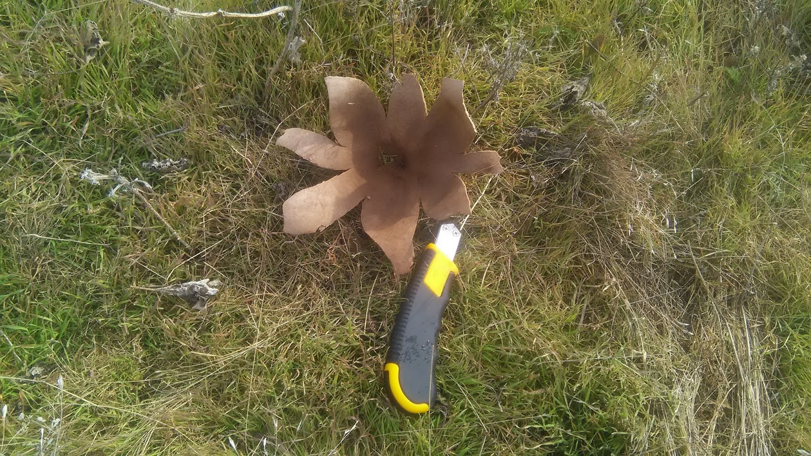 Но на этом наша поездка не закончилась! Солнце светило, пригревало, и оно ещё высоко... И мы едем куда-то в поля, где по весне росли степные сморчки - может быть, там будет синеножка (Алиса ещё не теряла надежды её собрать). Ткнулись туда, сюда... Вроде были все условия: и скотина паслась, и навоз под ногами, но...  синеножку больше не нашли. Один перезрелый шампиньон, да трупы зонтиков. И одна однобочка степная засохшая (вот ещё грибы, которые хотелось бы пособирать).