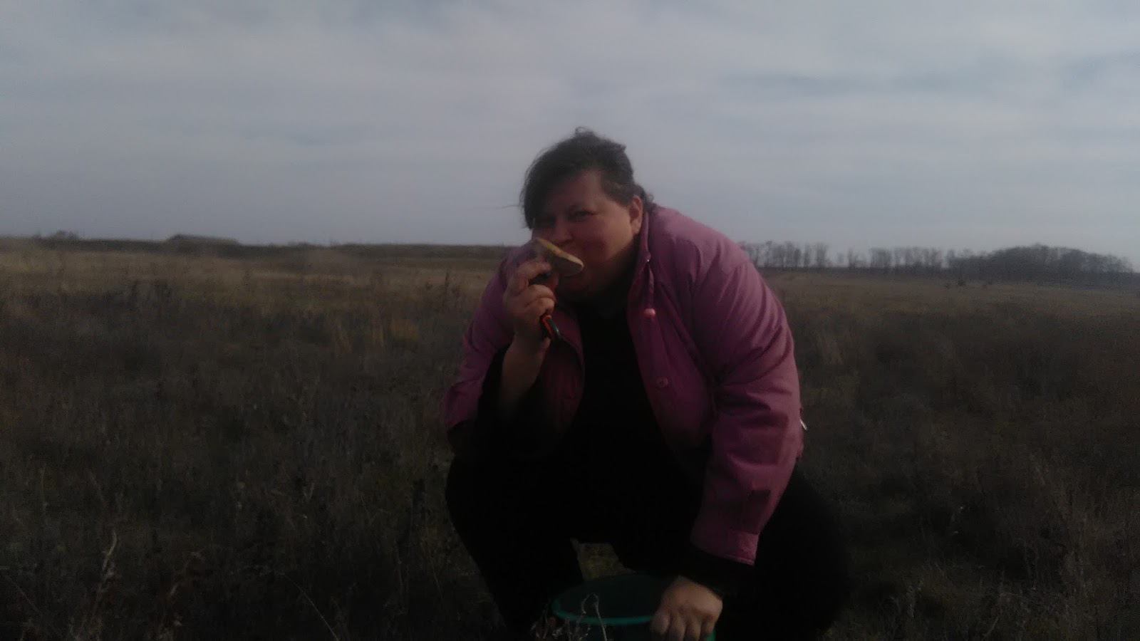 IMG_20161108_113602.jpg Наше первое место - "полигон" - широкий луг с восточной стороны балки. Мы рискнули, проехав по влажной грунтовке практически на сам луг. В этом году выросла высокая трава. Отыскать  синюю ножку в таких густых куширях практически невозможно. Пройдя почти весь луг мы не встретили ни одного грибочка. Не было даже научно- поганочной мелочи. Ну почему? Ведь были прекрасные дожди и летом, и осенью, не было палящего зноя и  больших холодов! Что им надо? Ведь  этой осенью сложились идеальные условия для грибов, почему они не хотят расти?