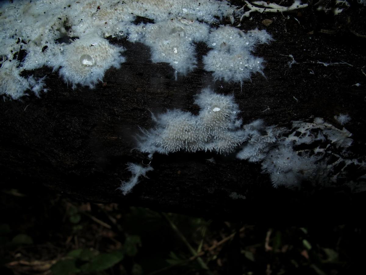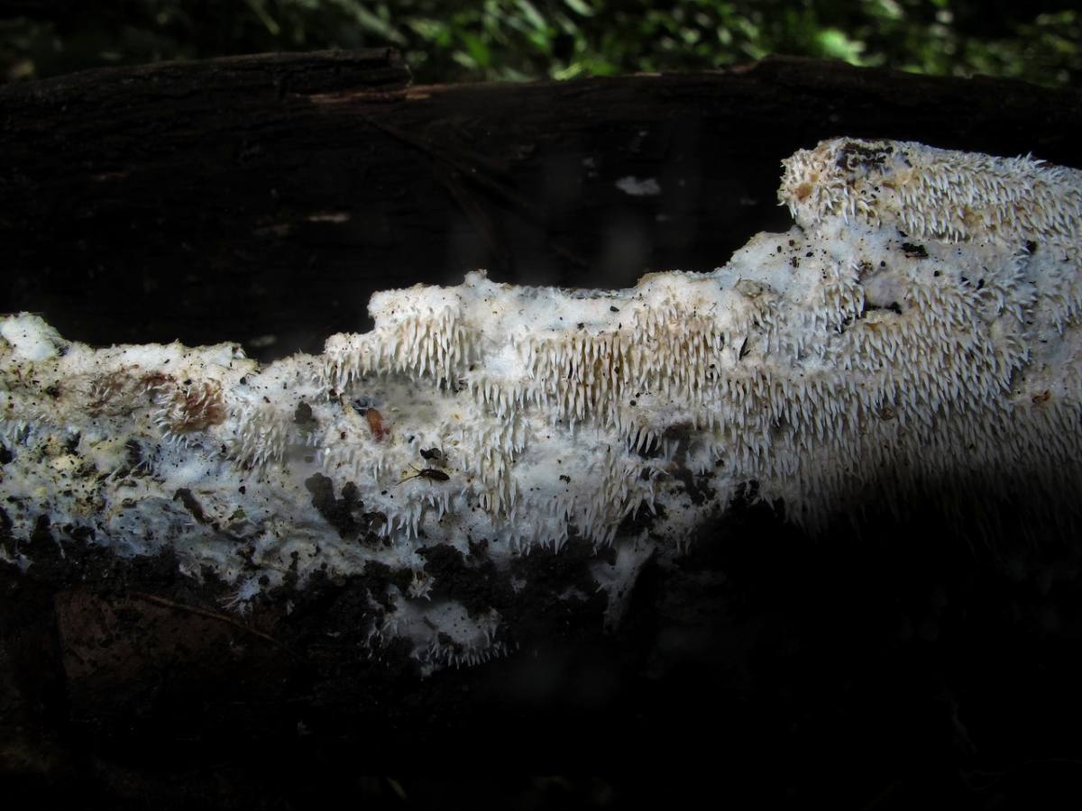 И ведь у меня вроде тоже он! Он у меня в неопределенных болтался, причем, как мне казалось, без перспектив. Но гидноидный гименофор и паутинистый край с ризоморфами говорят в пользу Hydnocristella himantia. Насколько помню, рос он на елке, в конце августа 2016 года.