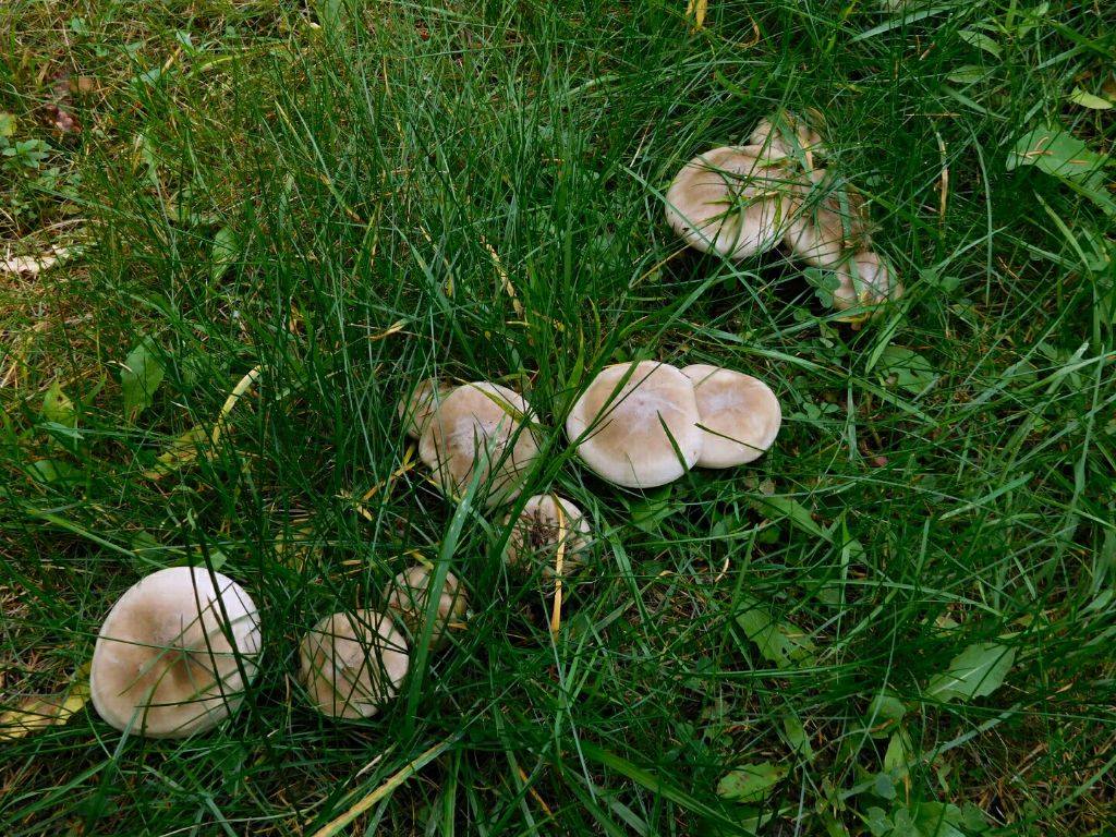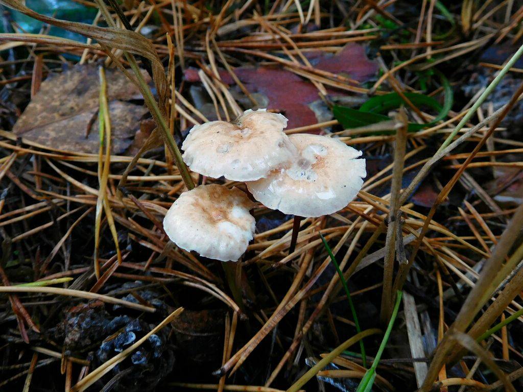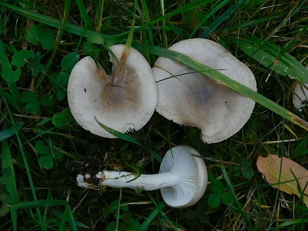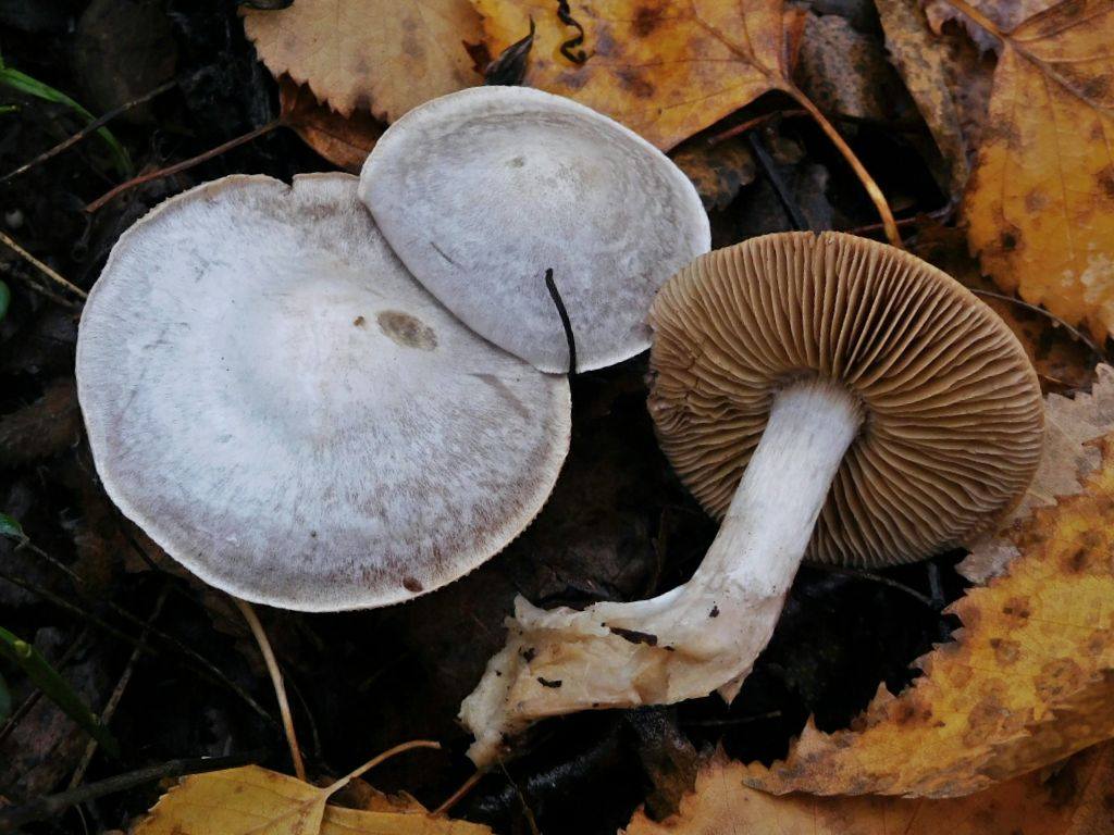 Рядовки фиолетовые, крупные и поблекшие от дождей, но легко узнаваемые и говорушки дымчатые.
