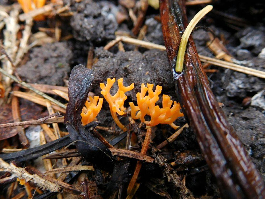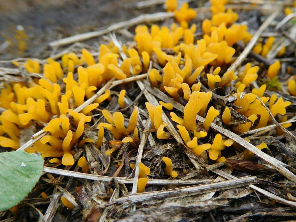 Залез в вожделенную клумбу. Рогатики шафрановые (Ramariopsis crocea) на месте, других нет.