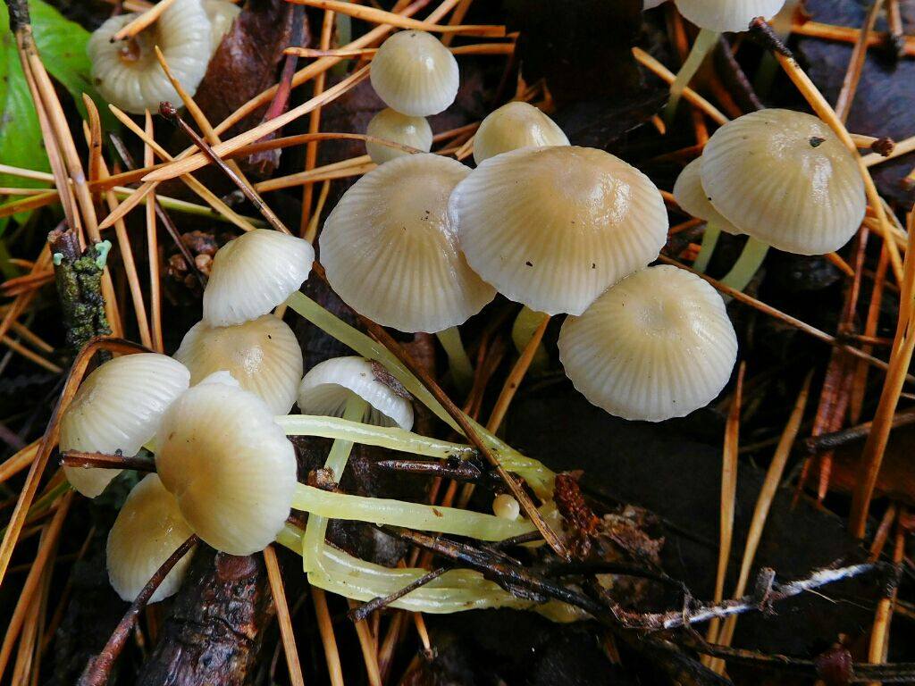 В массе растут коллибии (масляные Rhodocollybia butyracea и R.sp.), мицены (в частности, M. epipterygia)