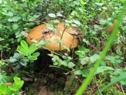 Ну Юля с Людой , как всегда выезжают не рано, и мы решили подождать их проверяя разные черничники . Очень многие места пустые, и надежды нет, только несколько полянок с ягодами. Ходим мы такие по черничникам, попутно снимаем цветочки и бабочки, наслаждаемся хвойным воздухом, лес совсем сухой, мох скрипит и не похоже что дождь был, почва очень сухая. Господи, что здесь может вырасти в будущем? Дождя, дай дождя, Господи! :madi11045::sm55:И тут мелькает светлая шляпка, неужели желчный успел вырасти? Но какая-никакая, а грибная жизнь, снять-то надо. Ага, желчный — боровик. Хамелеон какой-то, чтобы это чудо-юдо оказалось боровиком, это ж как иссушить всё вокруг надо?!