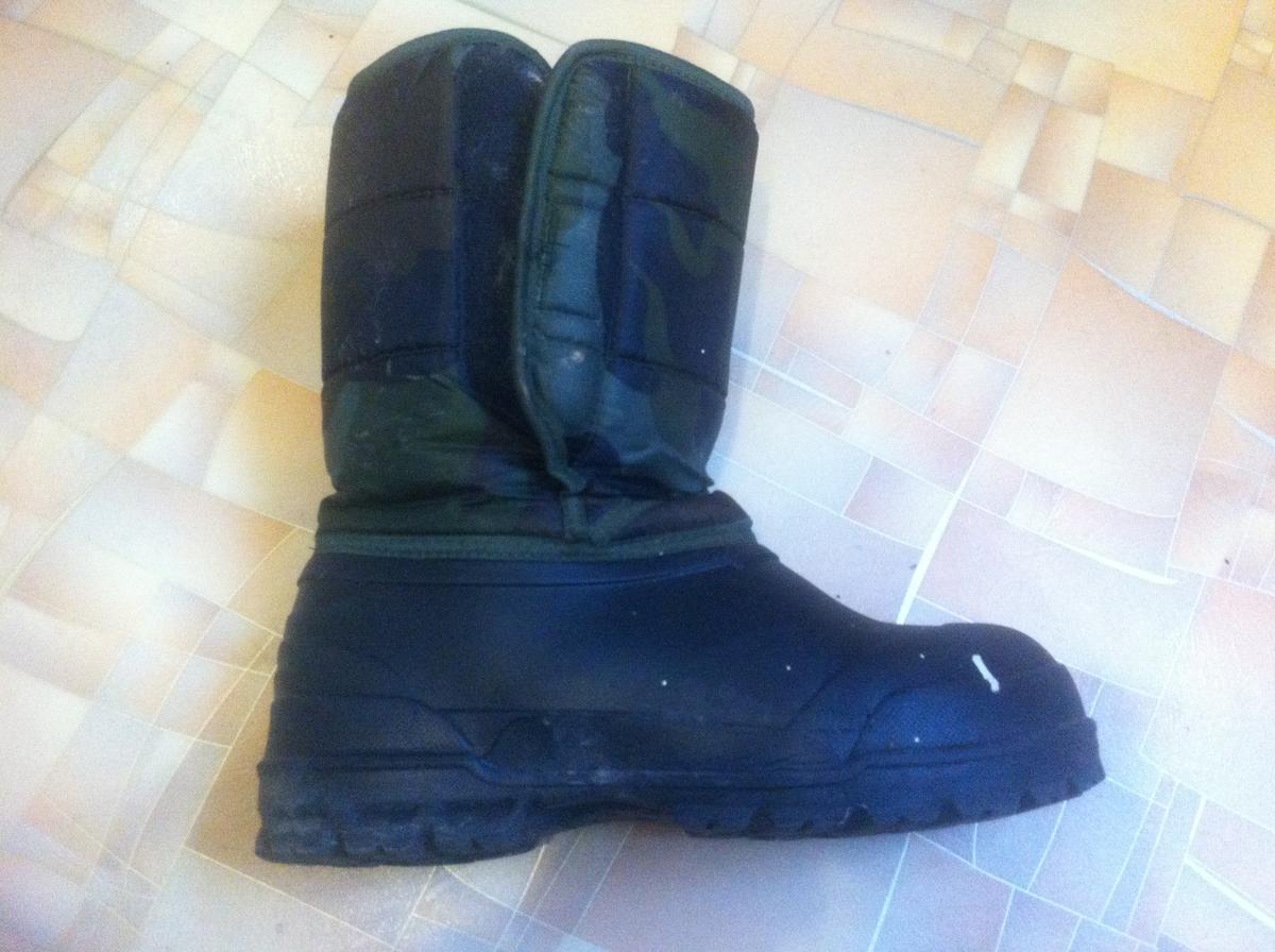 У меня вот такие за 500 р., купил прошлой осенью на ярмарке в Новоподрезково. Взял на 2 размера больше и 2 стельки внутрь - ноги горят всю рыбалку. Для весеннего мокрого снега по колено, когда нижний слой пропитан водой они конечно никуда не годятся.