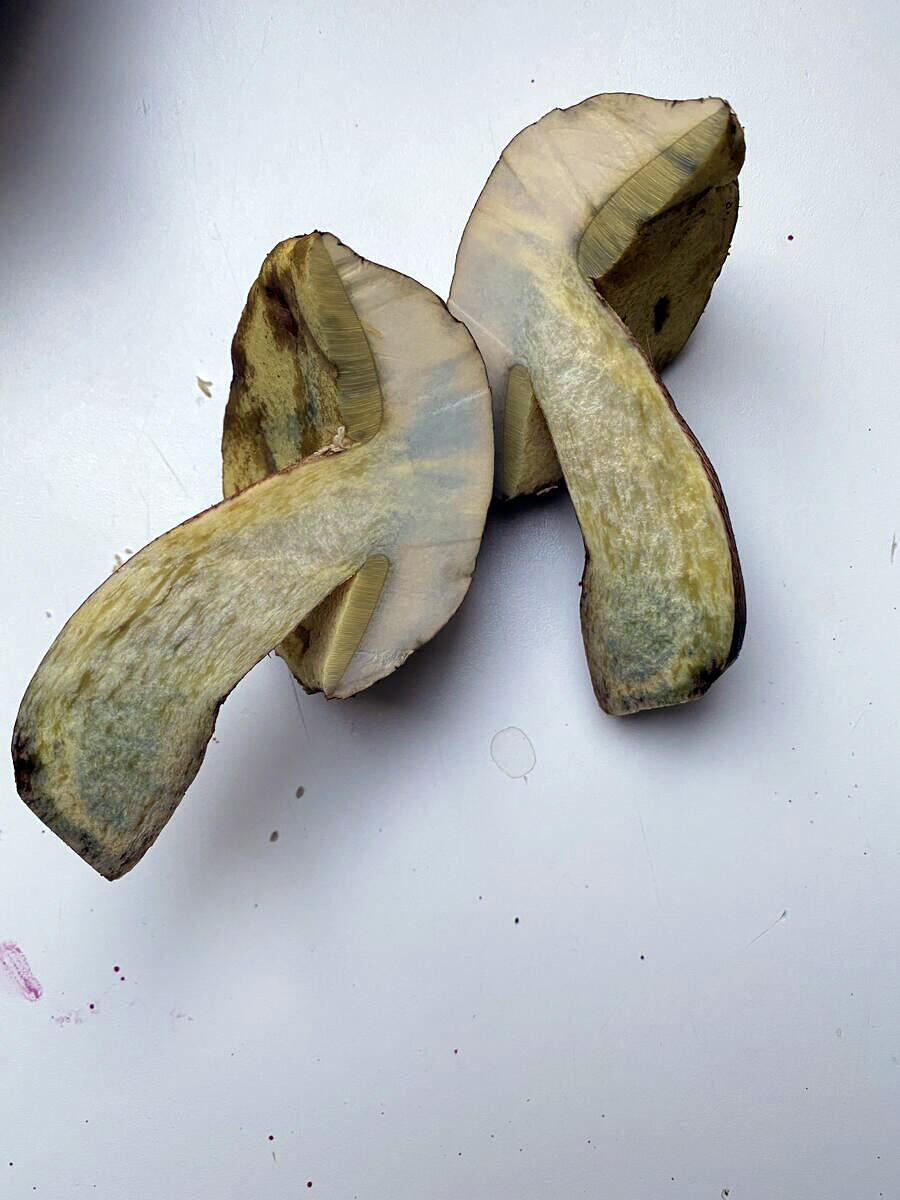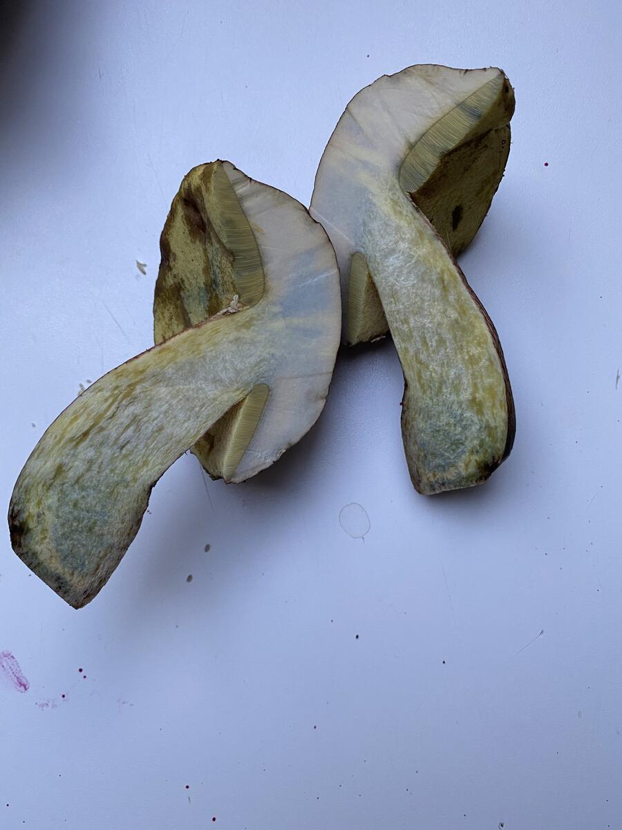 тогда совпадает цвет шляпки, посинение при разрезе, цвет трубчатого слоя и красновато-желтую ножку.