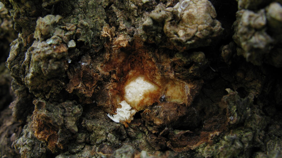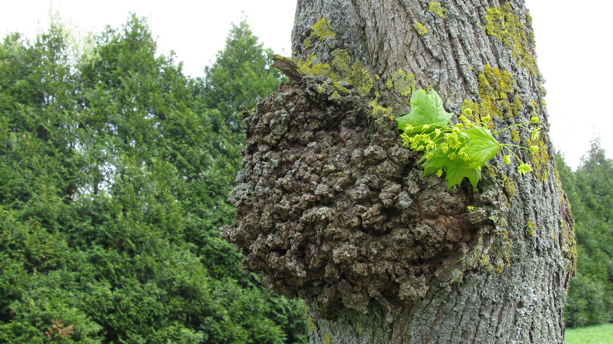 Да, срезать "не чагу" сложно. Чага срезается или спиливается относительно легко, а сувель или кап это часть древесины, при том очень крепкой. При резке вы должны сразу почувствовать это и увидеть на срезе эту свежую древесину, а не тёмно-коричевый гриб. Ниже - прошлогоднее фото капа на стволе медвежьего ореха. Тут я для наглядности сделал маленький надрез ножом (ф.2), чтобы не сильно травмировать живое дерево: