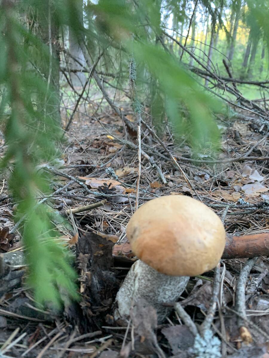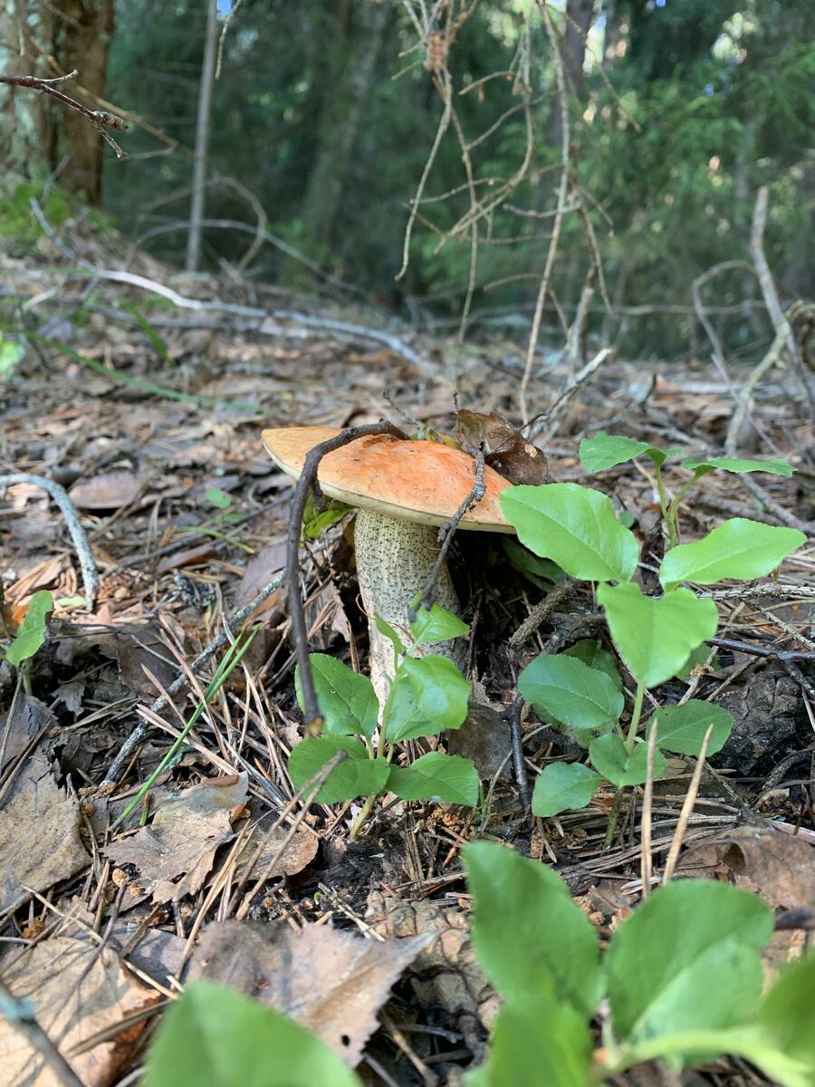Везде пусто, кроме единственного тёмного старого ельника. Поняли, что до нас там давно никого не было, стояло очень много лопухов подосиновиков, но попадались и молодые.