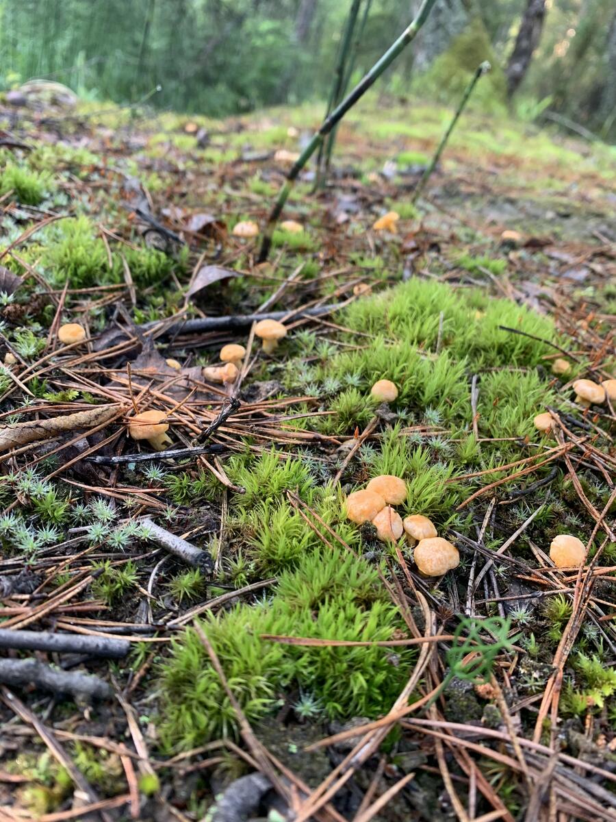 Осмотрели в субботу все возможные биотопы, намотали сотни км. В борах беломошниках влажно и тоскливо, престарелый боровик у дороги распался у меня в руках.