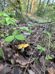 Ну и один красноголовик. Сыро в лесу. Лисичка пуговки. Недельку придётся подождать.