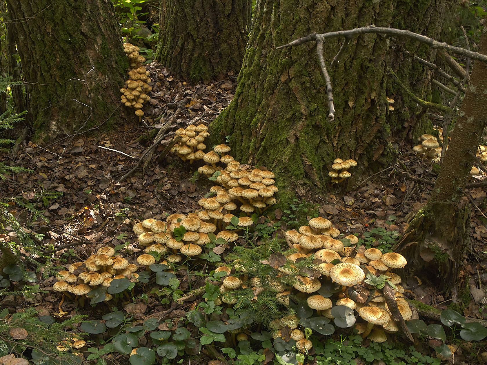 Единственные виды грибов, положительно отреагировавшие на природные катаклизмы были гифоломы серно-желтые, агроцибе и почему-то коллибия обутая, которая теперь коллибиопсис.