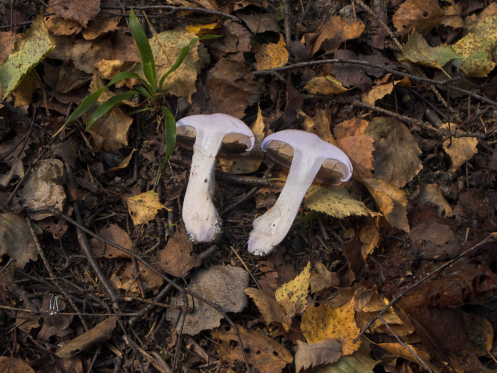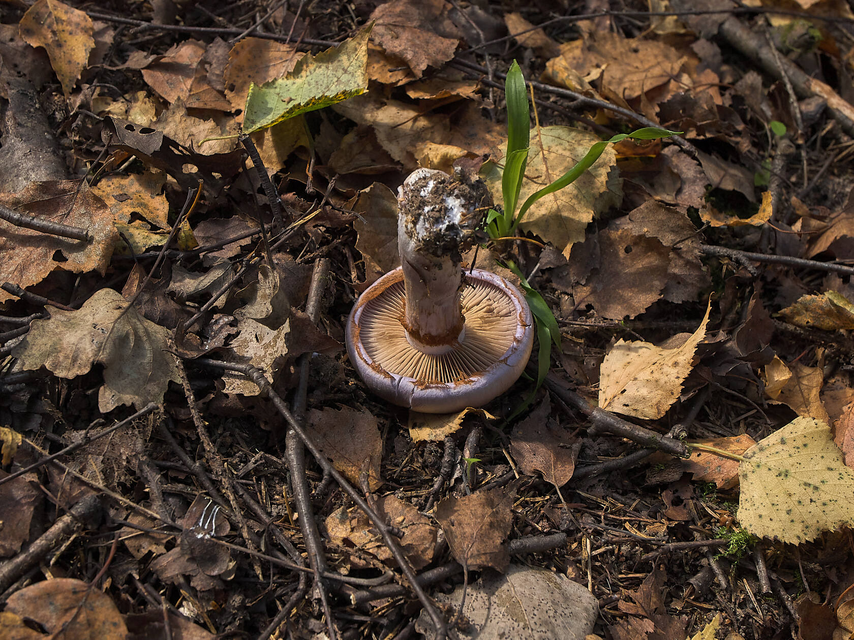 У меня в огороде под сосной, елкой и можжевельником, огромный жирный круг фиолетки - он абсолютно пуст, а грибница распушилась лиловатым войлоком. Ждет себе осенней холодной мокроты. А сорная, так она все лето может.  Фиолетоватые срезы сейчас вот от чего, они тоже вкусны и съедобны: