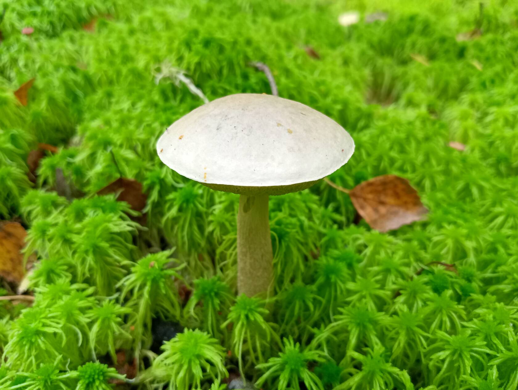 И вот, когда мы, приятно беседуя, проходили песчаной дорожкой молодой сосняк, на краю дорожки, в ярко-зелёном мху показалась чья-то красноватая шляпка: