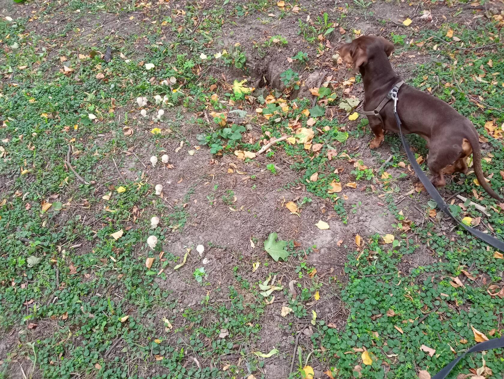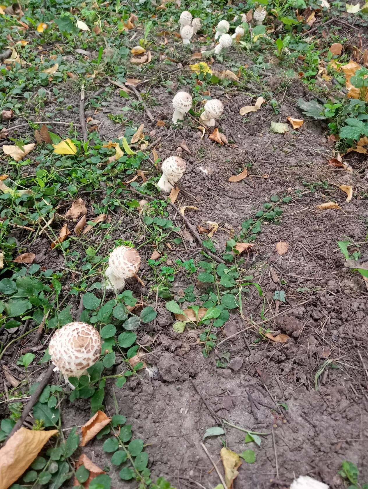 Аааа, да что же это такое?! За опятами поехала специально - одни "лопухи". А вышла на прогулку с собаками - на тебе! Лезут крепкие, молоденькие, ведьминым кругом. Насчитала около 22 штук (собаки утянули по делам). Настричь на сковородку с досады?! :DЧто же это? Зонтики?