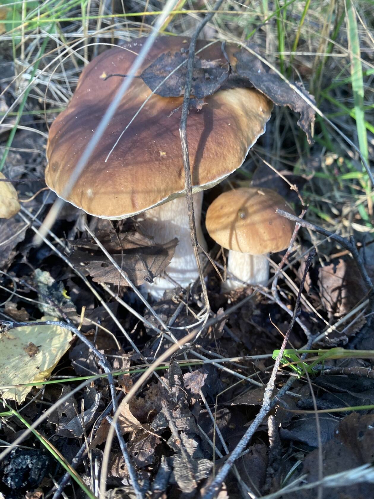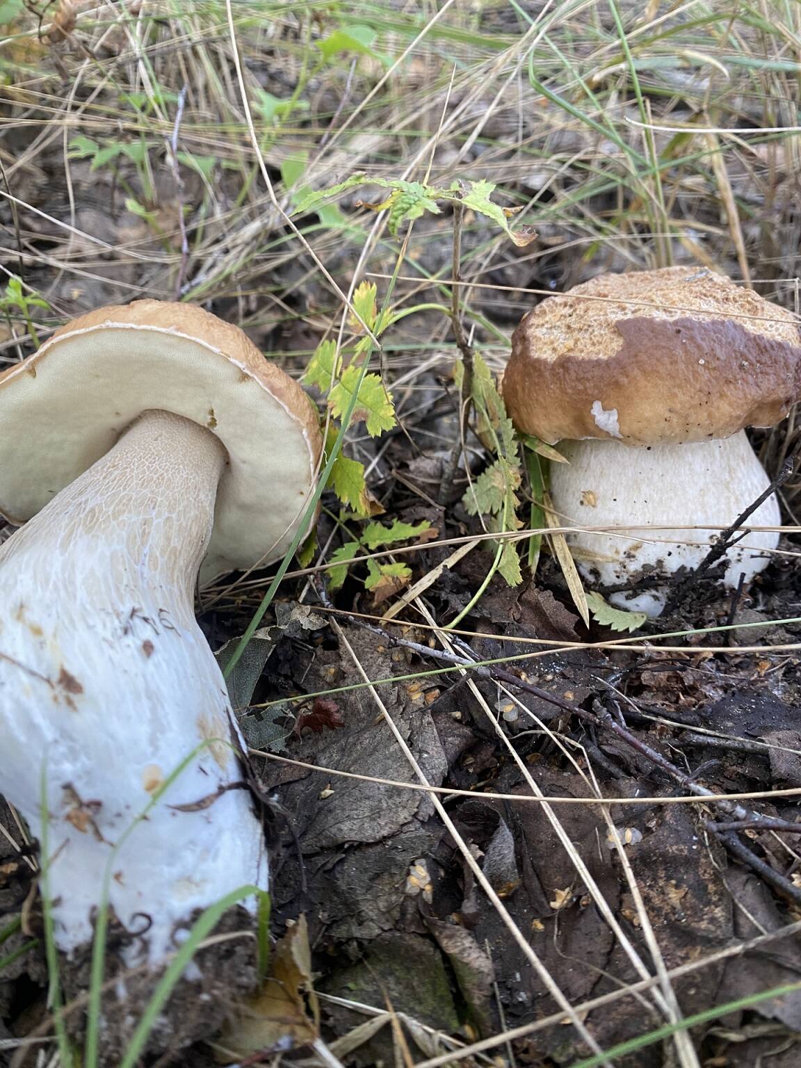 Белые все попались молодые, чистые. Размеры разные, но радовало, что мы собираем в основном грибы длиной (высотой?) до 10 см. С диаметром шляпки от 2 до 8 см, прошу прощения за внезапную геометрию, Грибы побольше тоже попадались, но на них отразилось температурное воздействие - шляпки уже были мягковаты.