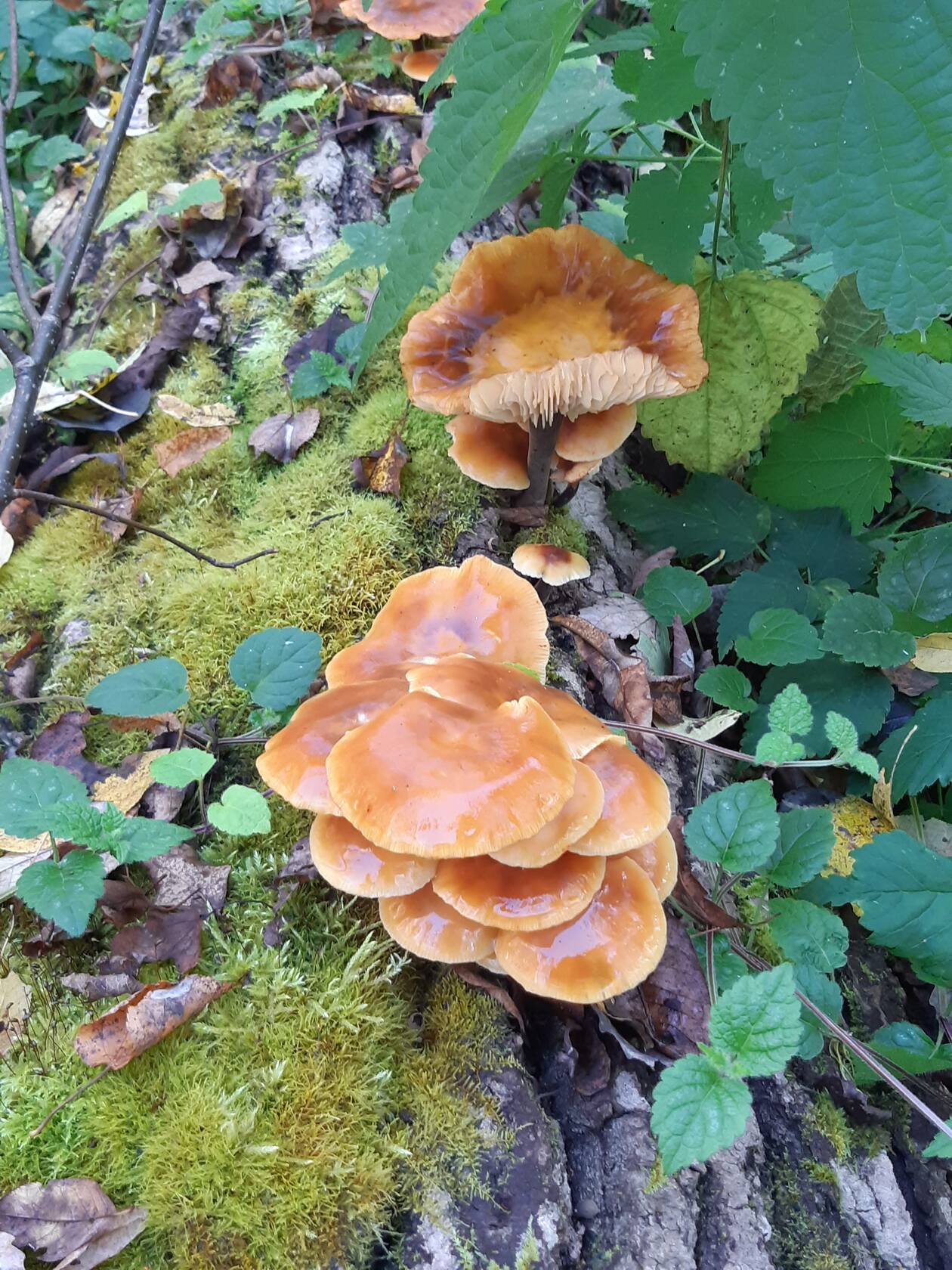 Вчера воспользовался тем, что ездили на дачу по делам, и прогулялся по Щегловке от Мызы в сторону Демидовки. Главной целью было посмотреть места, а то я дальше, чем на километр-полтора, и не ходил там особо. Разведкой доволен, интересные нашлись уголки. По грибам не особо весело. Опят почти не видел, хотя немало прошёл оврагов, крапивы, валежника и проч. Зато обнаружились уже перестоявшие вёшенка (рожковидная, да?) и фламмулина - прямо на одном бревне в большом овраге.