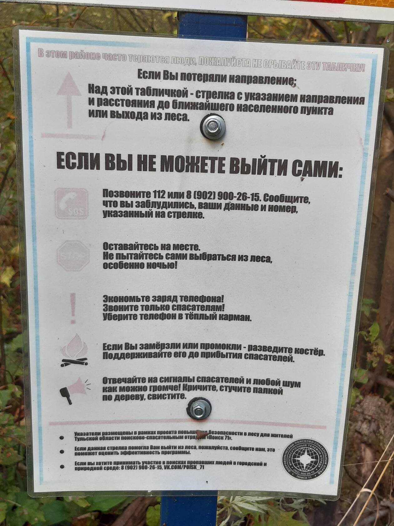 На лесных дорогах стоят указатели с памятками для заблудившихся. Первый раз такие вижу. Видать, частенько бывает)