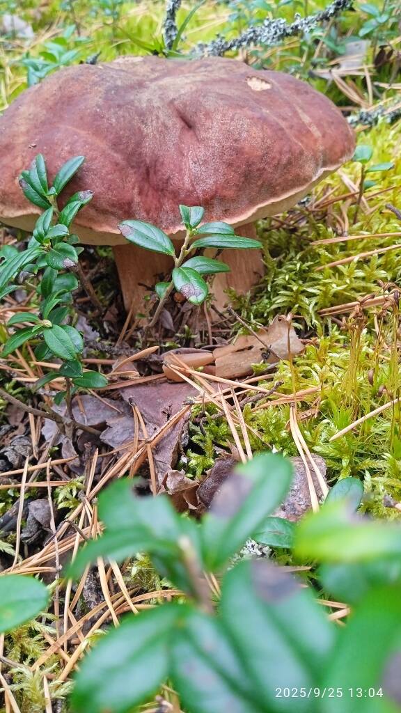Нашлись там же ,во мху ,пара немолодых белых.  С очень странным ярко жёлтым трубчатым слоем . Будто они впитали лисисечный сок из мха.