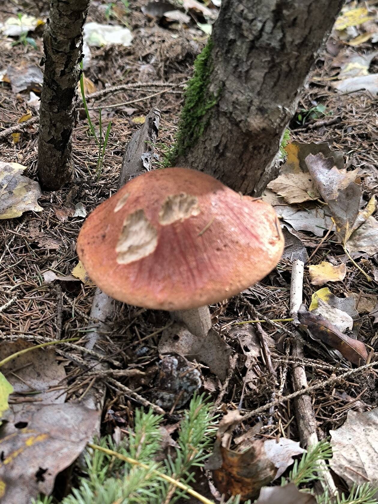 Всем привет. Сегодня сбегал с утра на разведку. Утром +6 , ветер холоднющий. Солнышко не греет. Место в этом году не посещал это. Когда то заросшее поле, сейчас полноценный лес. В перспективе выглядит лучше всех. Ёлки , береза, травы мало. Раньше там было засилье подберёзовиков, но видно лес вырос и они там исчезли, уже года 3 там пусто. Так же собирал там рыжики, но так как не ходил туда в этом году, не знаю растут или нет еще в этом месте. В итоге, ощущение, что ходил в мае, ни чего для меня съедобного там кроме 4 молоденьких фиолетовых не нашел. Просто красота и ноль. Вышел на старую дорогу,  набрал на донышке польских, штук 20 может,  уже приличных,пару чернушек, и 10 желтых сыроег, два белых переростка.. По идее, сезон про благородные можно завершать тут. Завтра дотопаю глянуть фиолетовых раз вылезли мелкие. Обычно они с дымкой, но дымка тут пока отстрелялась. Всем добра и мирного неба над головой.