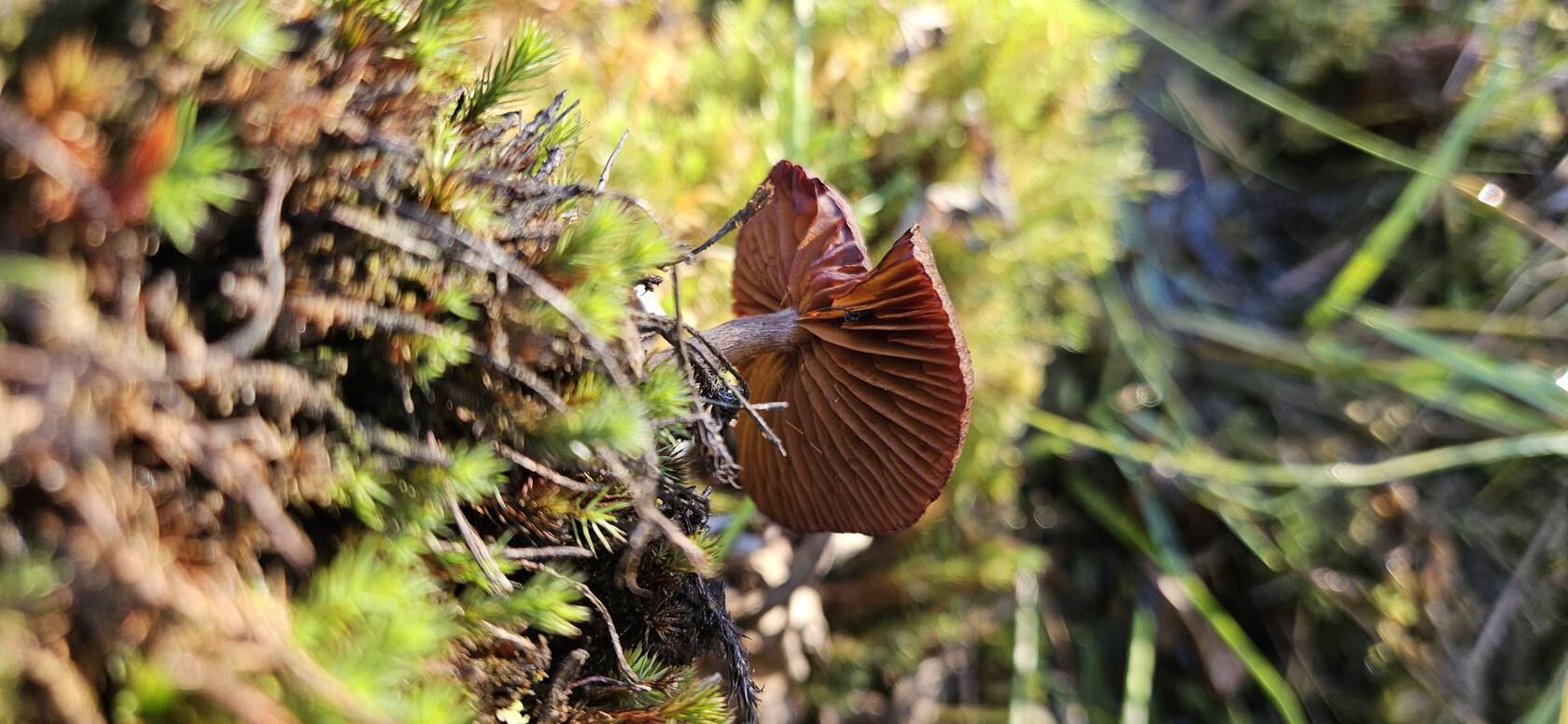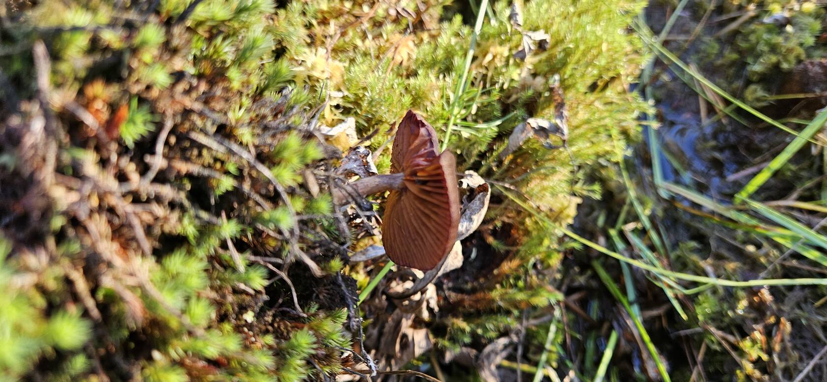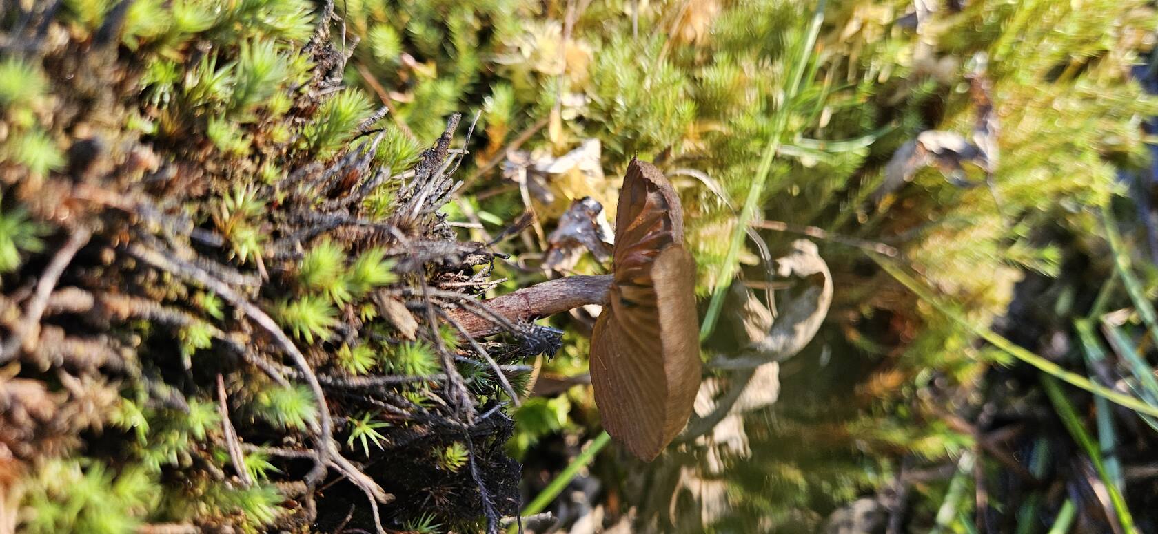 Добрый вечер. Подскажите что за гриб ,найден на болоте среди клюквы,при сборе которой случайно пальцем задела гриб и отломилось часть шляпки,потом этими руками клюкву собирала дальше.  Интернет напугал что это галерина ,и клюкву надо выбросить(((