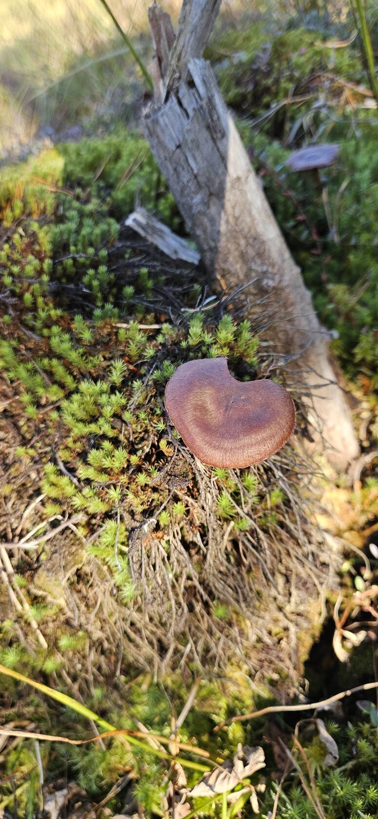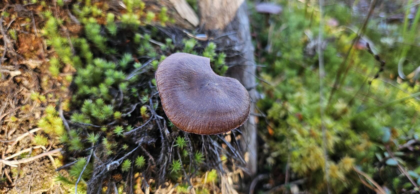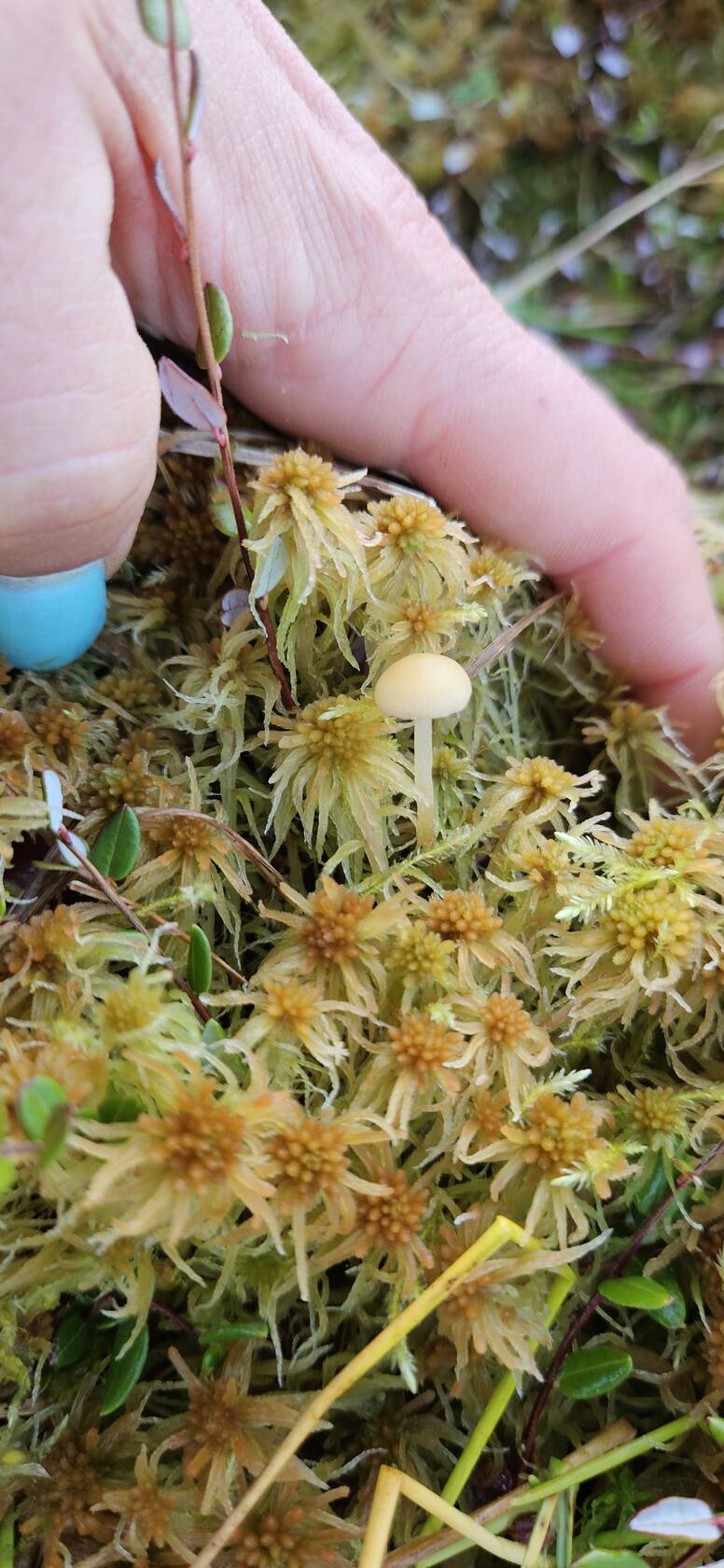 Добрый вечер. Подскажите что за гриб ,найден на болоте среди клюквы,при сборе которой случайно пальцем задела гриб и отломилось часть шляпки,потом этими руками клюкву собирала дальше.  Интернет напугал что это галерина ,и клюкву надо выбросить(((