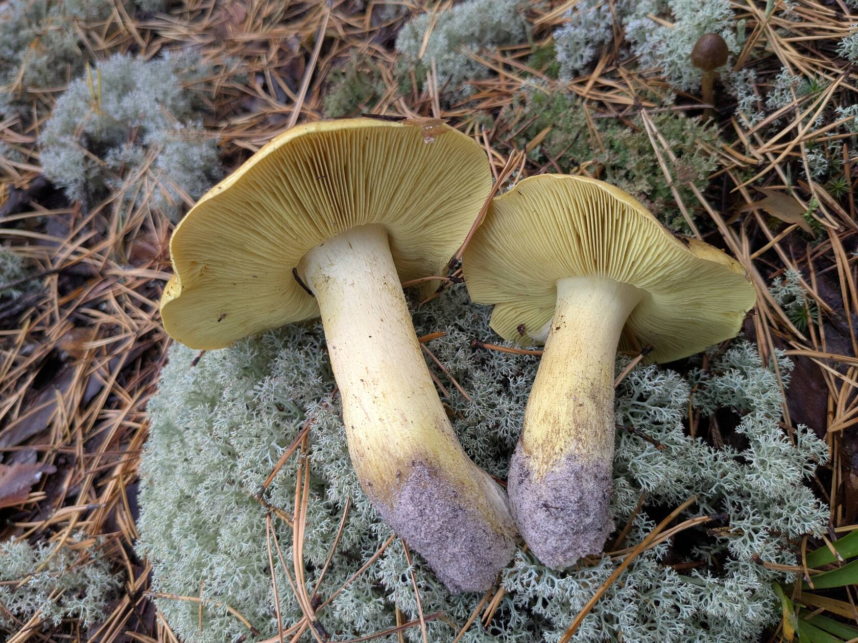 Потом сместилась ближе к Гусю - лисички попадаются, моховики, рядовки фиолетовые.