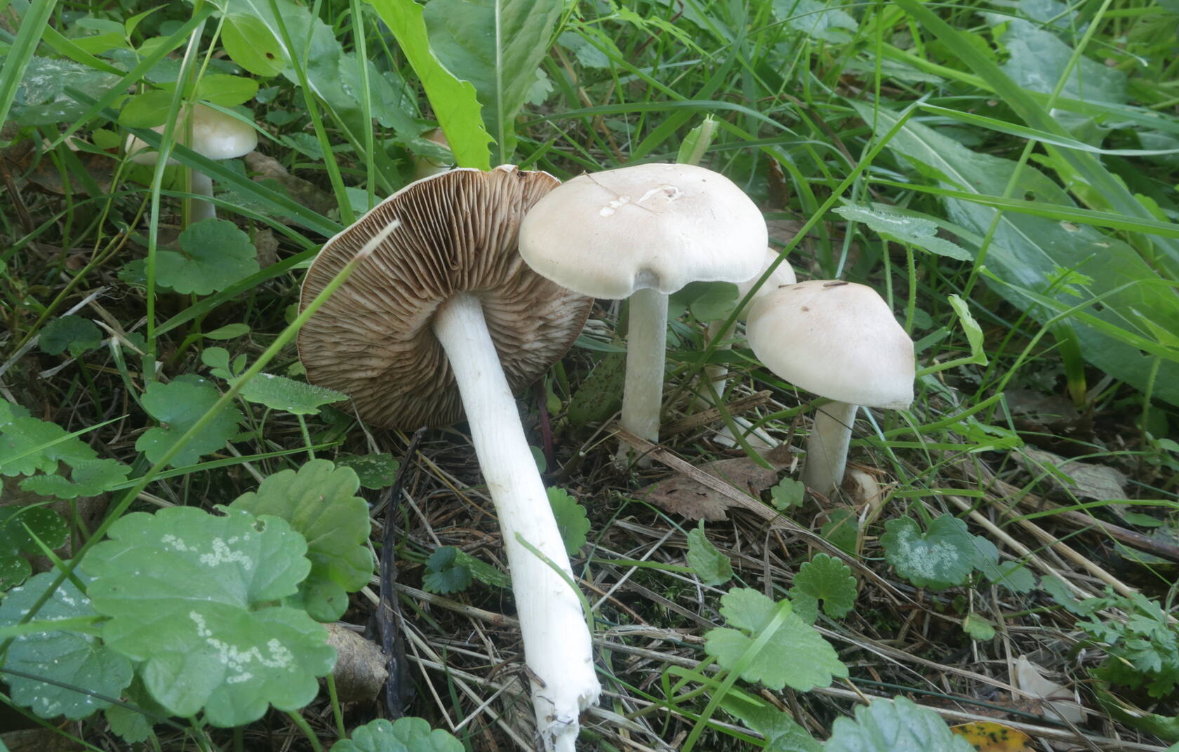 там на пне - псатиреллы, а в траве - энтоломы. Им номер забыли приписать.