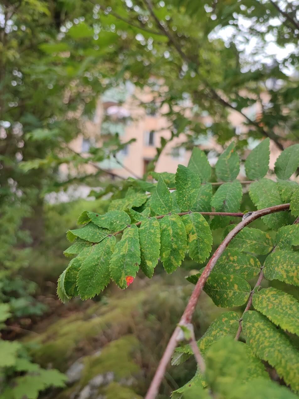 35. На рябине у подъезда гимноспорангиум (с эцидиями)
