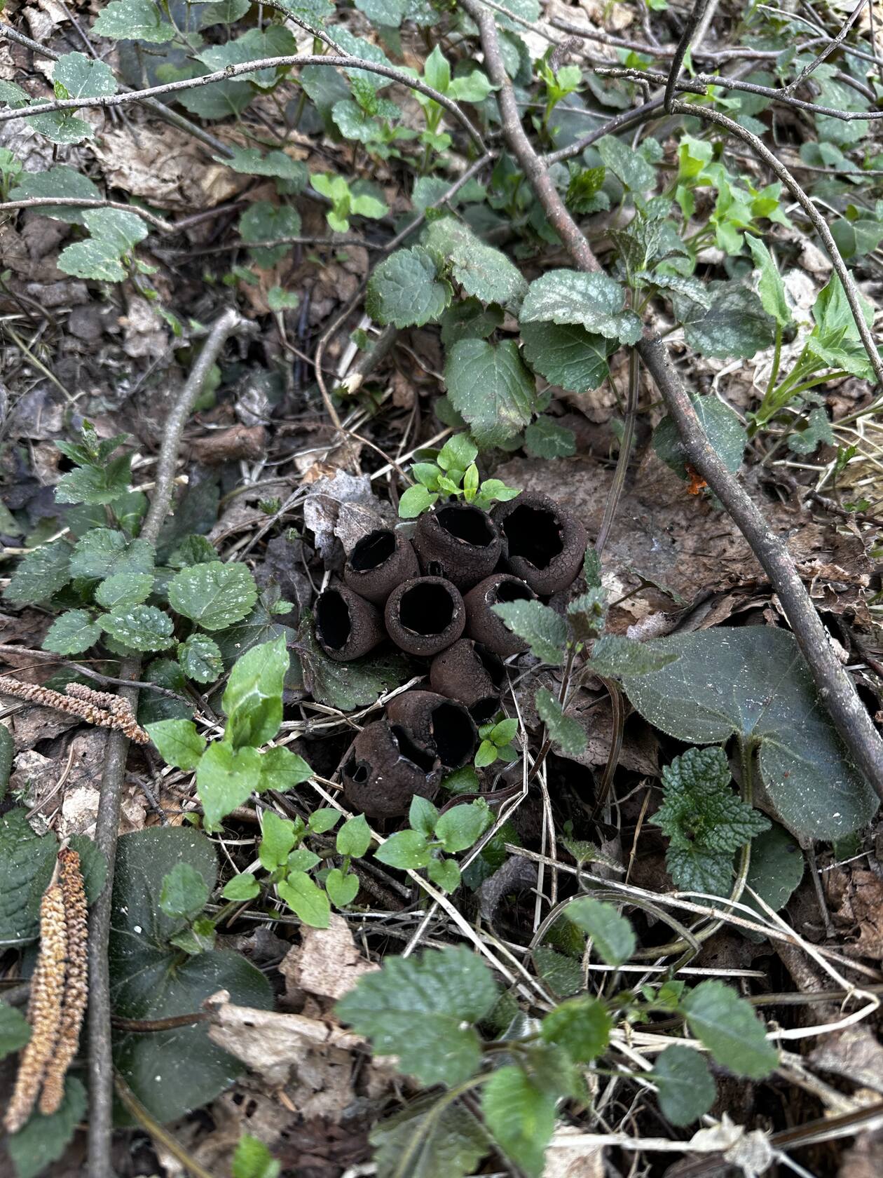 Ещё встретила довольно много кучек, как позже выяснилось, урнулы бокаловидной. А я-то уж сначала обрадовалась, что это краснокнижная шаровидная саркосома))) Но что ж, так тоже хорошо, урнула для меня новый вид))