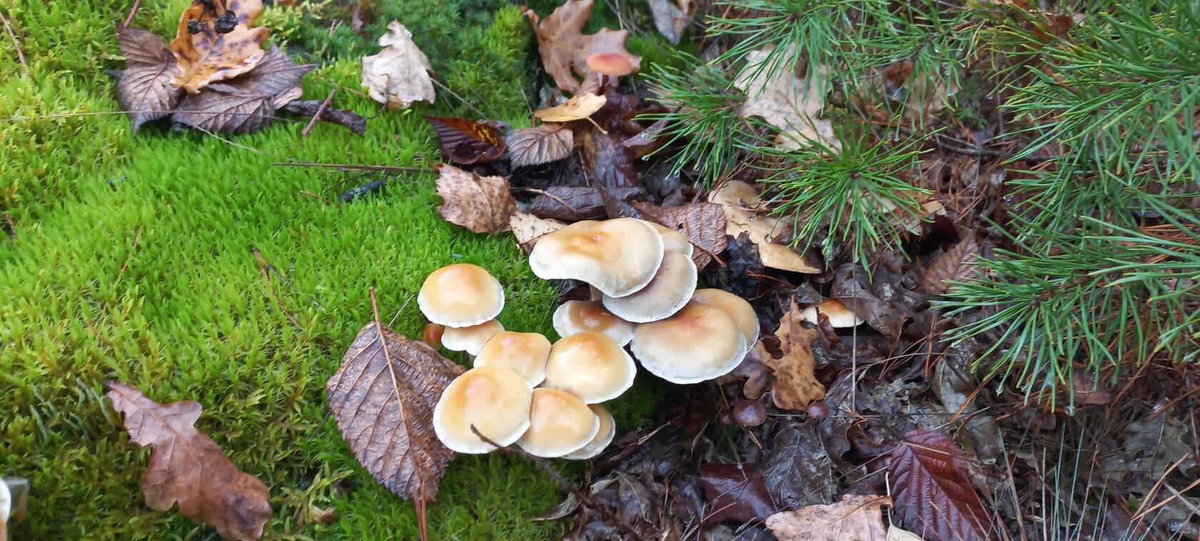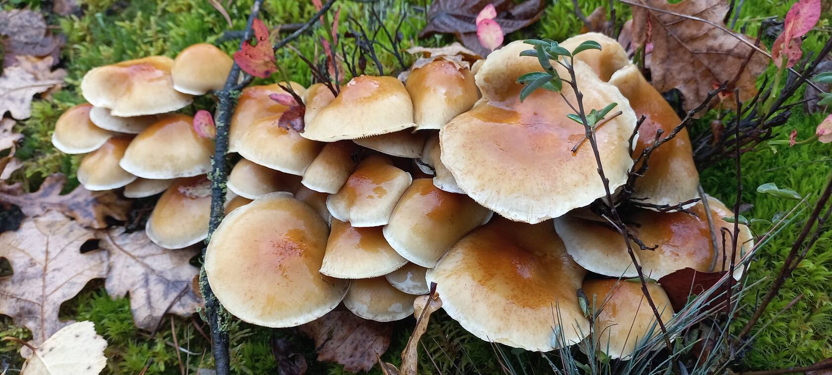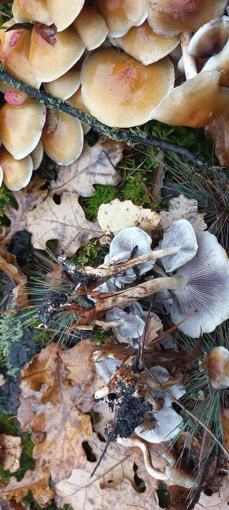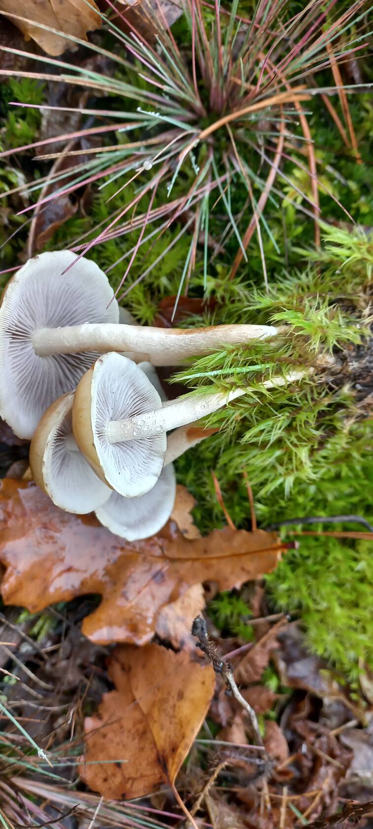 Подскажите, пожалуйста, что могут представлять собой эти грибы. Они обнаружены сегодня в густом смешанном лесу, где росли семьей рядом с рядовками фиолетовыми.