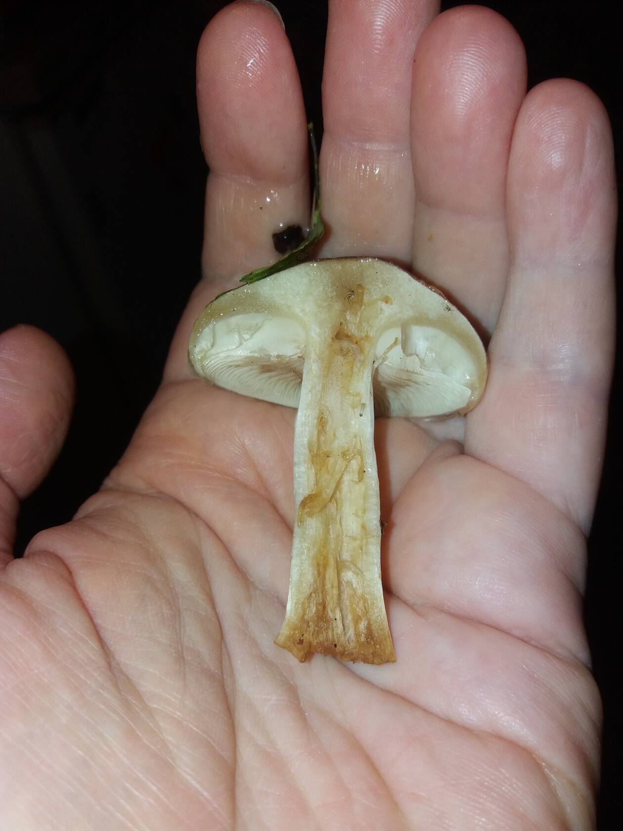 Ножки с рыхлым центром, внутри полностью белые, но на разрезе коричневют.