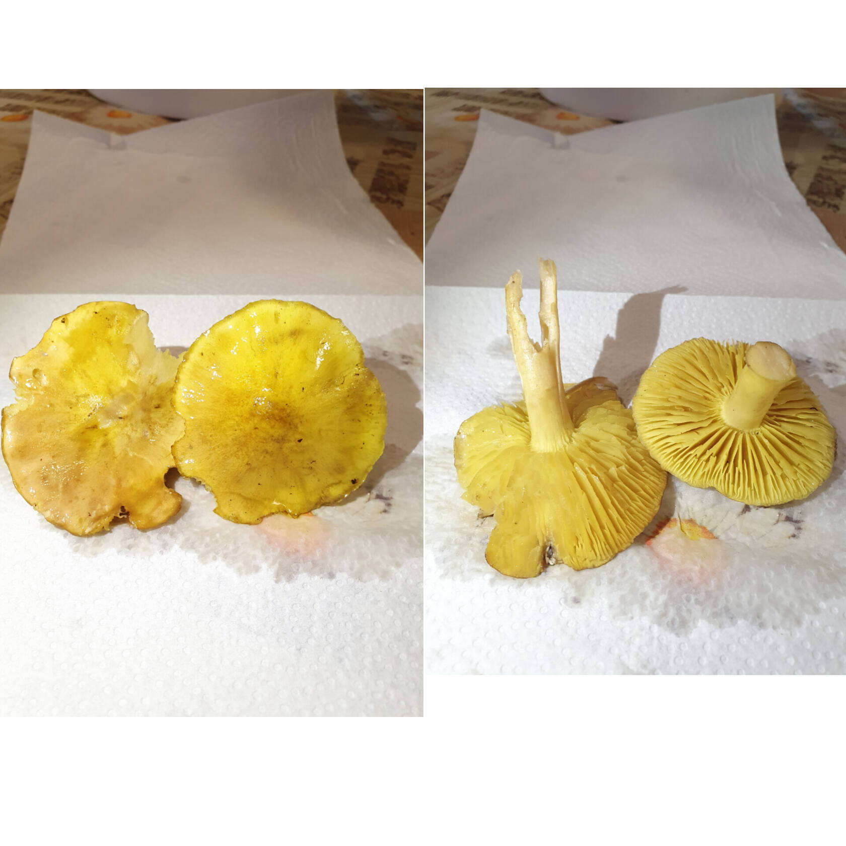 @dmitriyss думаю, что чешуйчатка клейкая (Pholiota lenta). Только непонятно откуда там у молодых грибов горчичный запах.