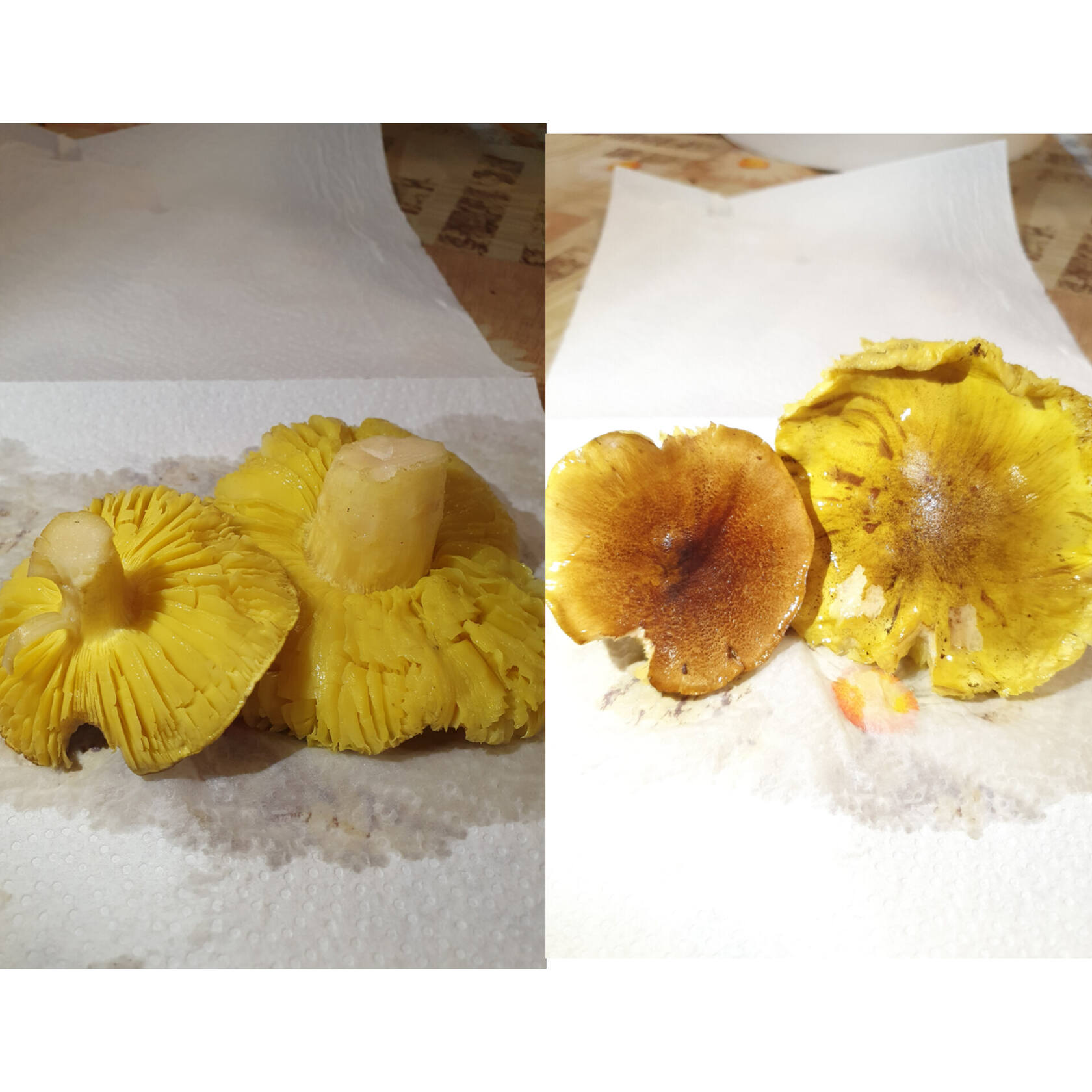 Запах был обычный грибной, но после разрезания сменился на горчичный.