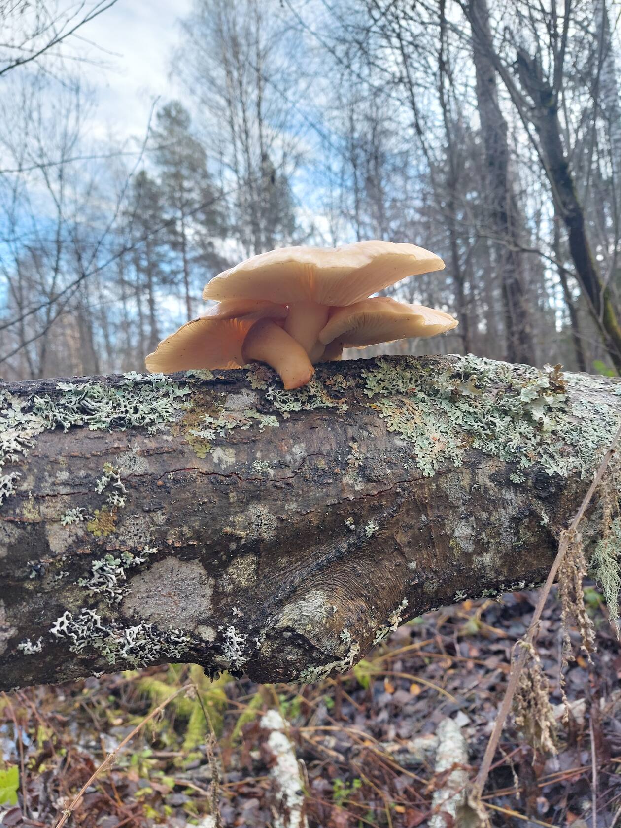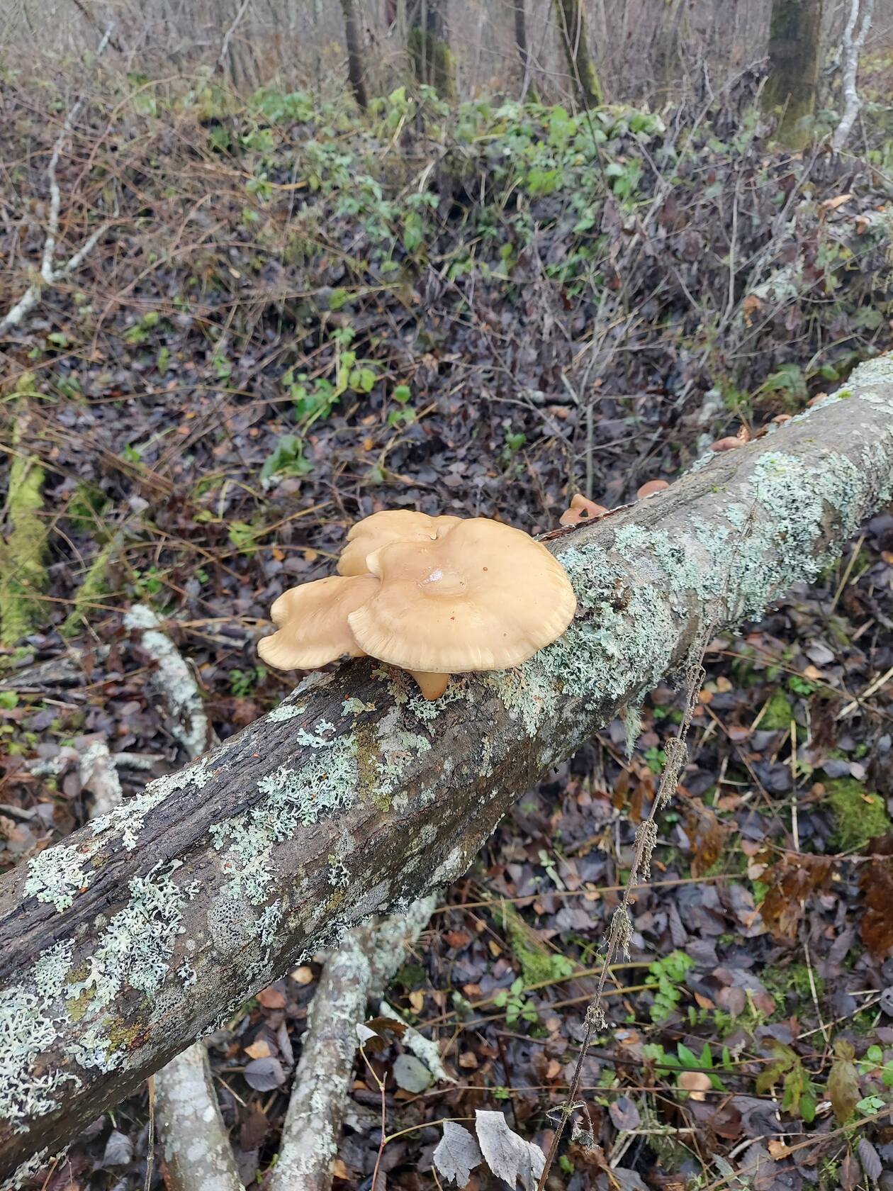 Мокрый смешанный лес, юг Архангельской области, конец октября. Плотная группа из трех плодовых тел на поваленном дереве, похоже на вёшенки, но пластинки не приросшие к ножкам и более хрупкие, чем обычно у вешенок, очень светло-кремовые, почти белые. Сами ножки более выражены, чем привычно для вешенок; и, главное, грибы имеют горький вкус даже после получасовой жарки.