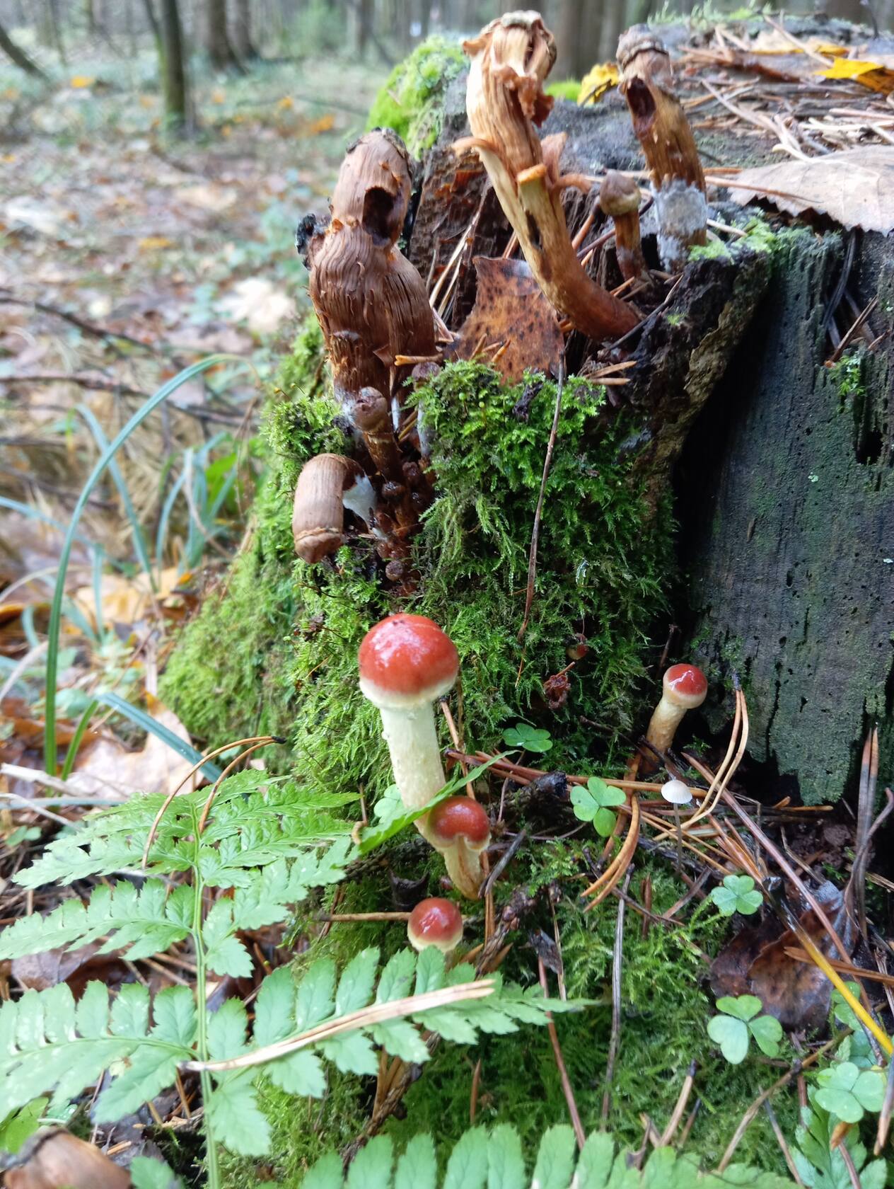 Это были самые свеженькие, молоденькие и красивые грибочки. Штуки 2-3 были на пеньке, остальные по земле, но рядом с палками.