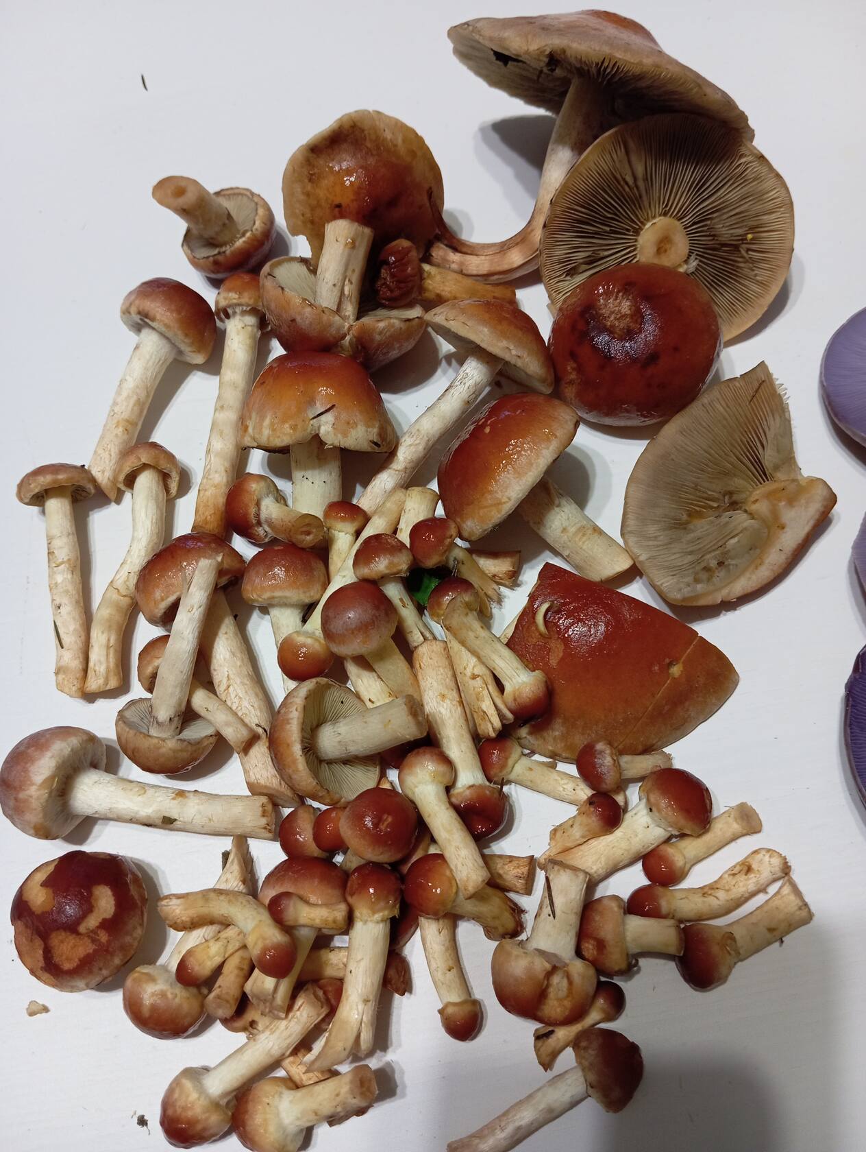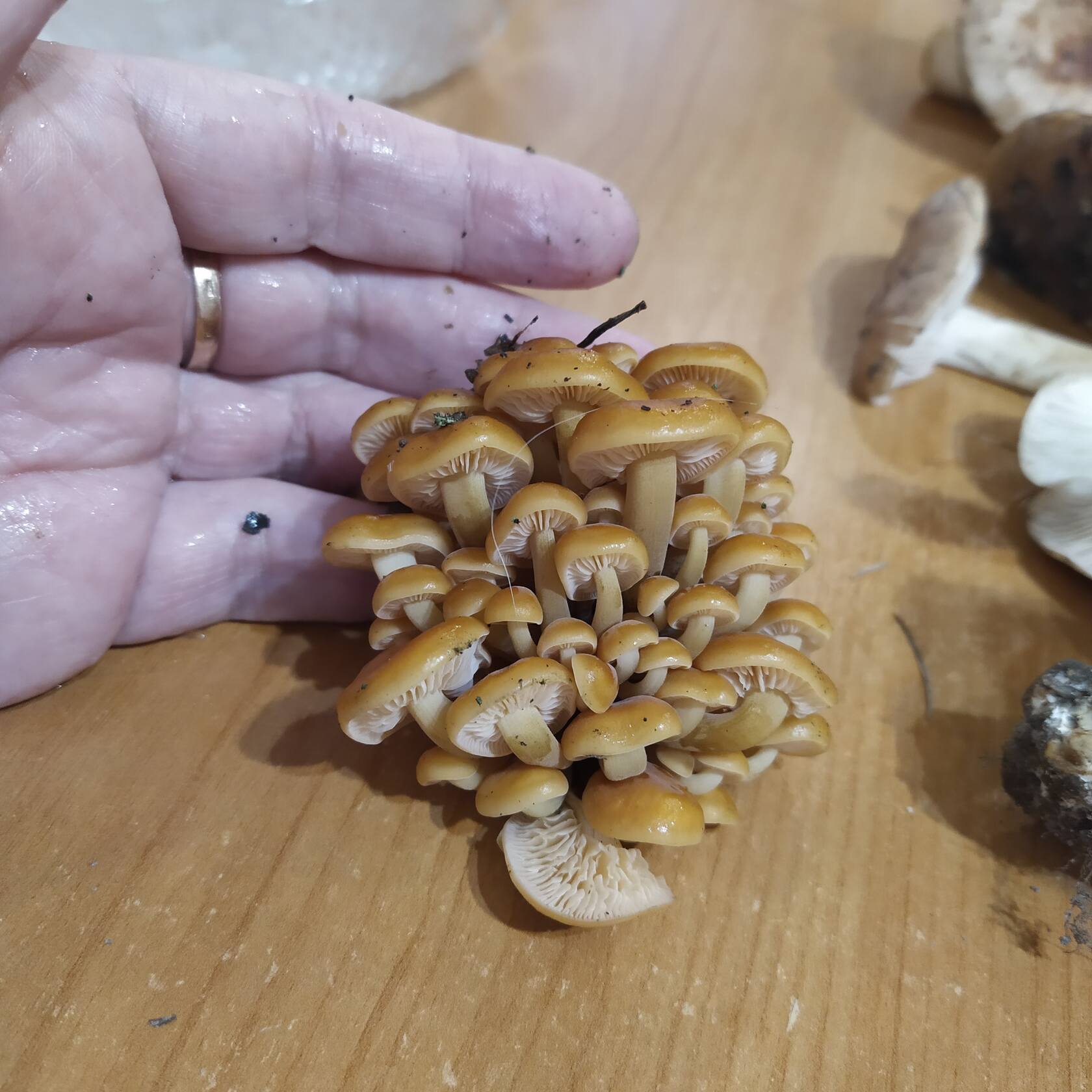 А, можно ещё добавить, что споровый порошок, скорее всего, белый: в местах нависания одной шляпки над другой нижняя была окрашена белым.