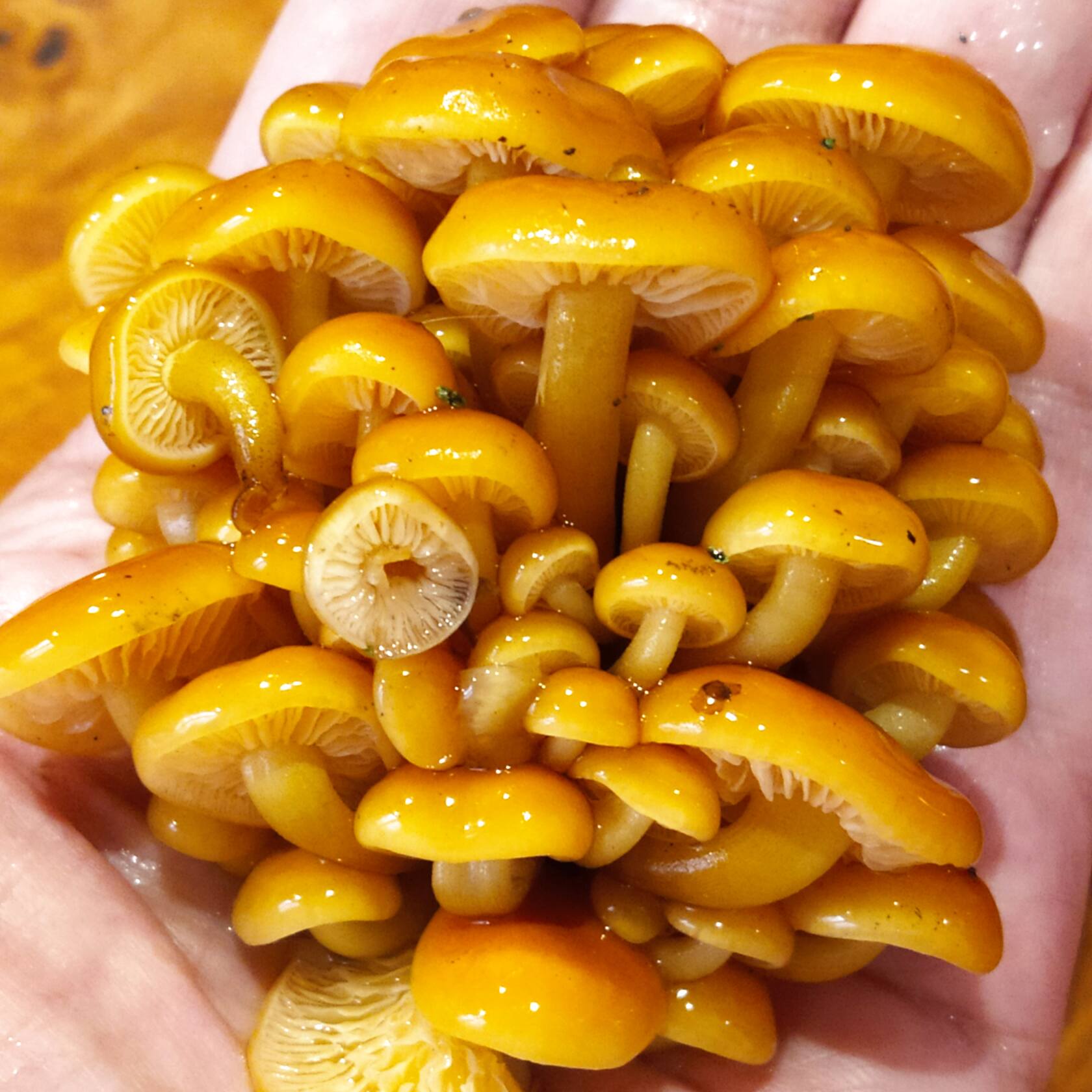 Нашла вот такую красоту. Определила как опёнок кирпично-красный. В лесу связи не было. Почитать не могла. Взяла их домой. Но думаю, что есть не буду.