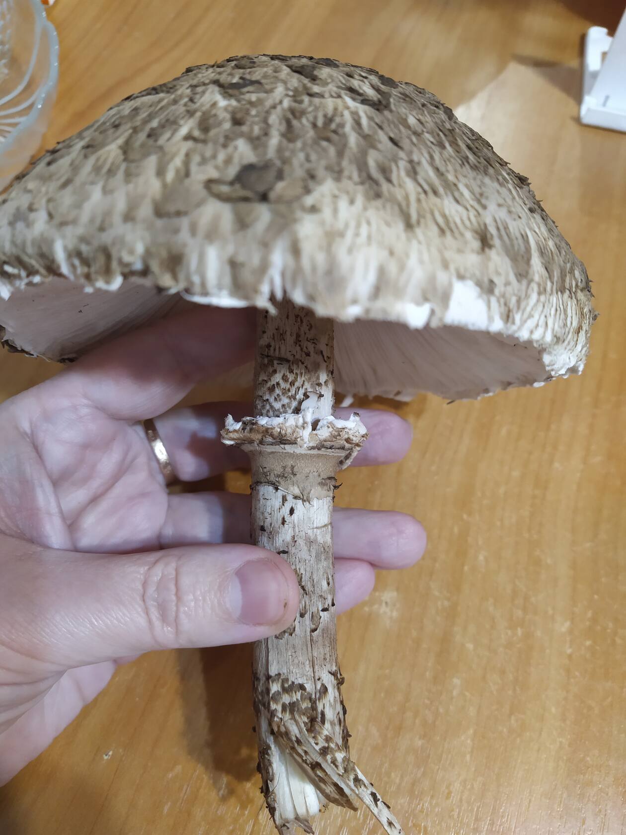 С виду вроде нормальный краснеющий, если не полумифический Chlorophyllum brunneum - их вроде только после приёма внутрь различить можно )