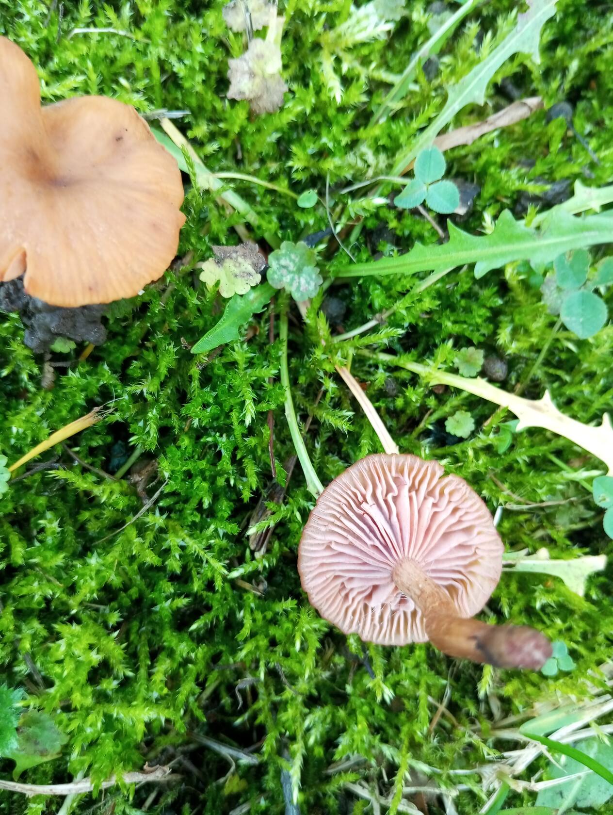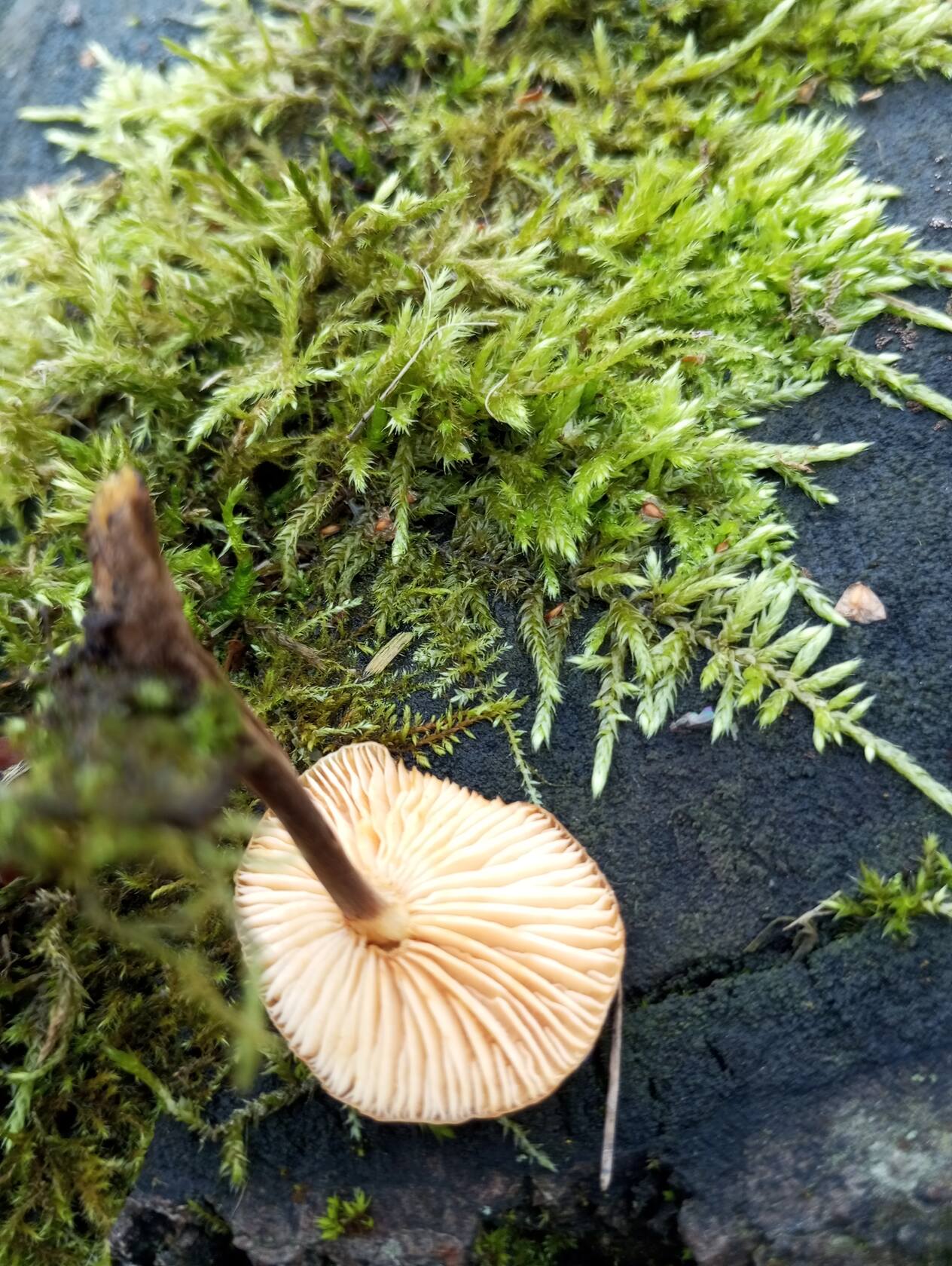 @Denver слишком много вариантов видится. И лаковица, и галерина, и тубария. Лаковица, мне кажется, отпадает, ножки другие, не в цвет шляпки. А вот по двум другим вариантам непонятно... Думал на мелкие галерины, они мох любят и просвечивающиеся среди них есть. Но и тубарии с учетом вот этой фотографии Игоря Лебединского тоже не отбросишь.
