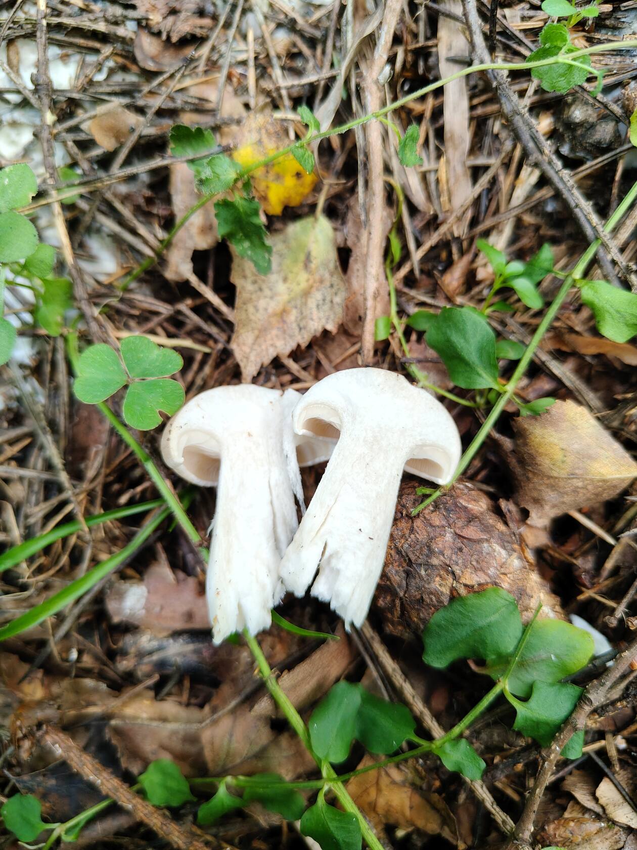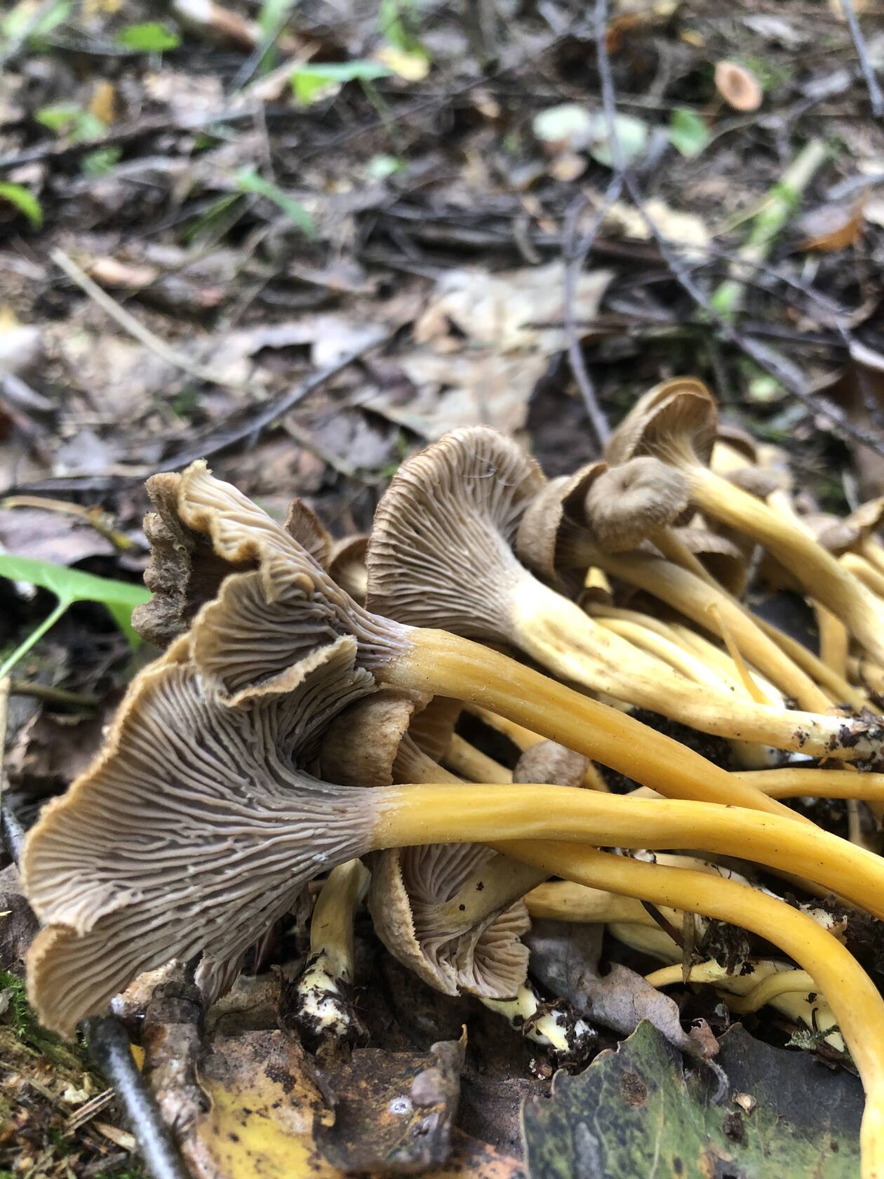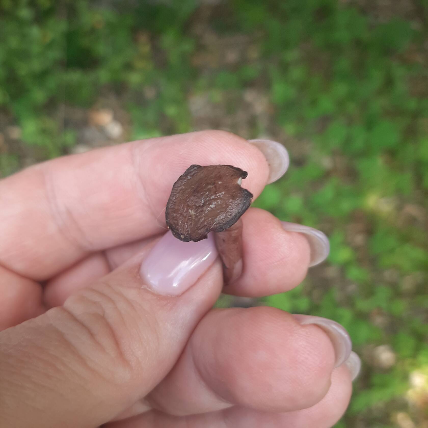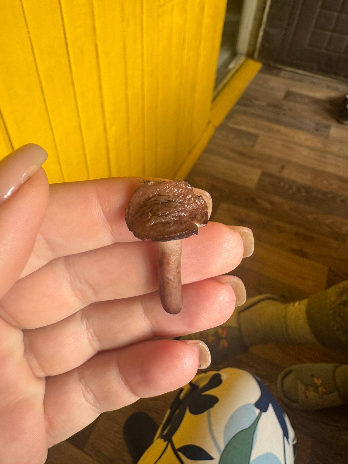 Проблема в том, что никто не помнит чтоб срезал такое. Боюсь как бы не рос в семействе опят, вот и попал. При  заливке в банки на фоне сероватых опят выделялся темнобежевым цветом вроде слегка с розовым оттенком. Края были подняты вверх. Фото часов через 10 сделали.