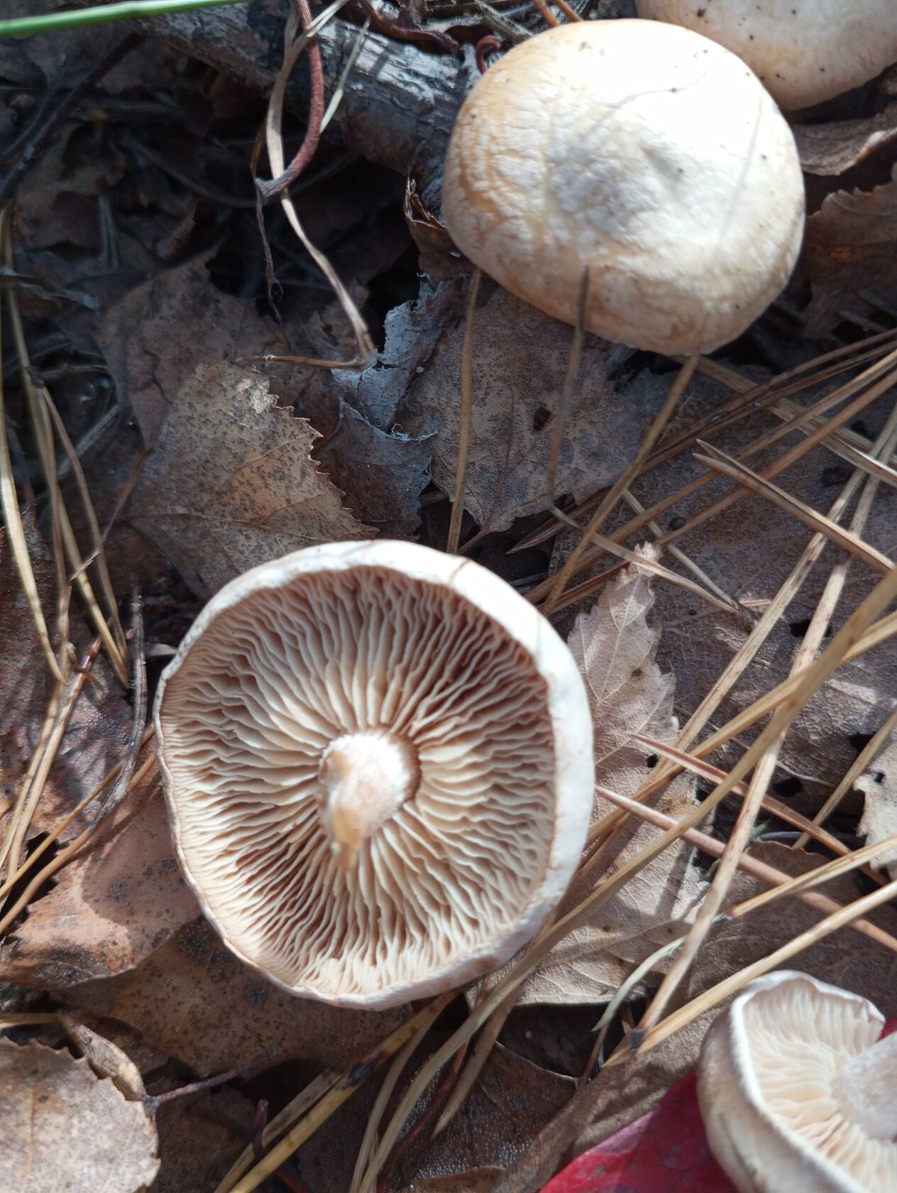 Добрый день! Гуляю по лесочку под Москвой, береза, осина, сосна. Посмотрите пожалуйста, это вот похоже на землистосерую рядовку? Вроде мышата, нет? Растут большой группой, не срастаются. Запаха по моему почти нет.