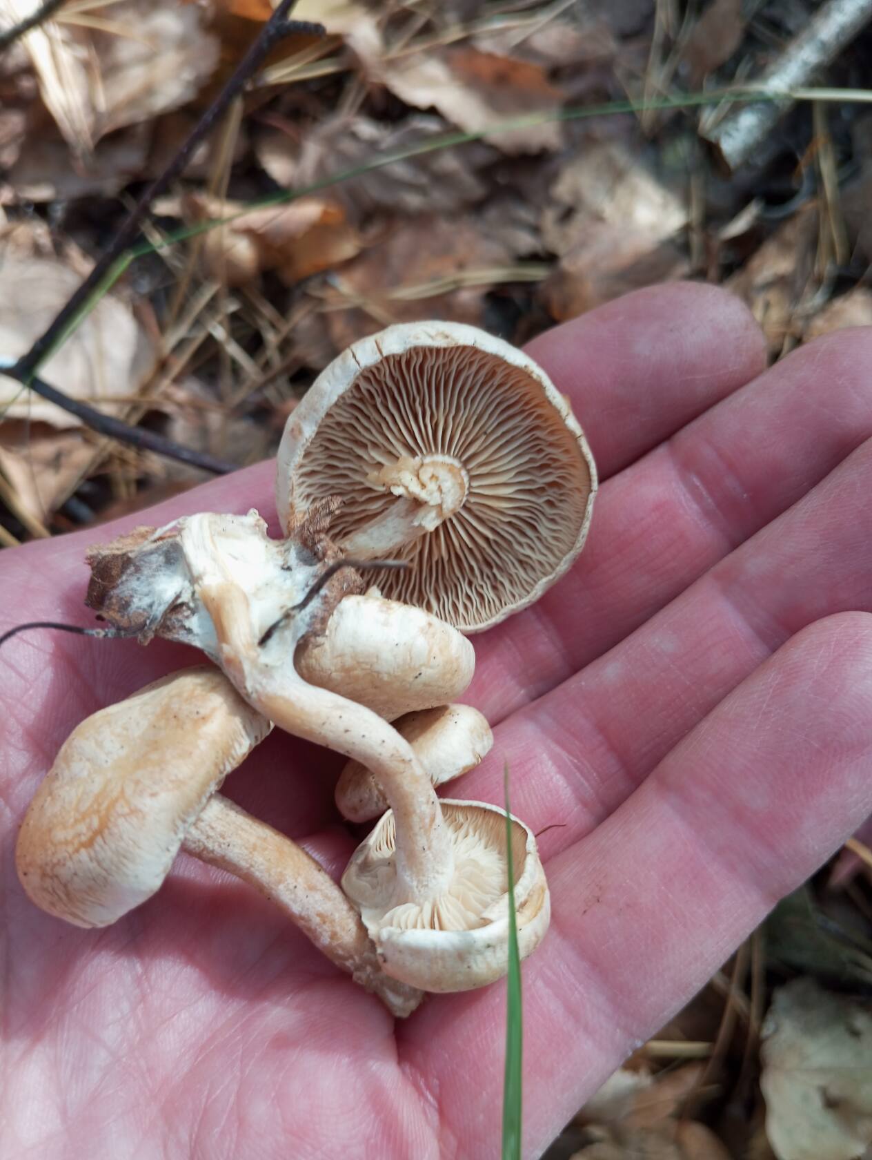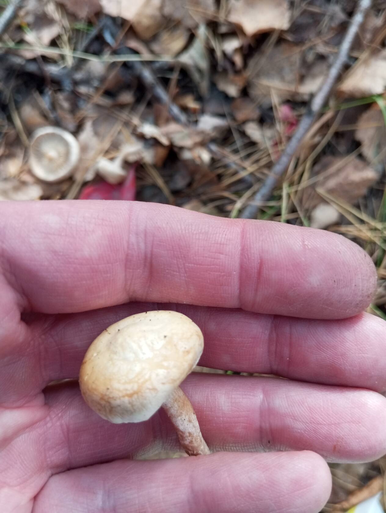 А вот это пахнет как опята. Но растет прямо на земле, под берёзовыми и осиновыми листьями.