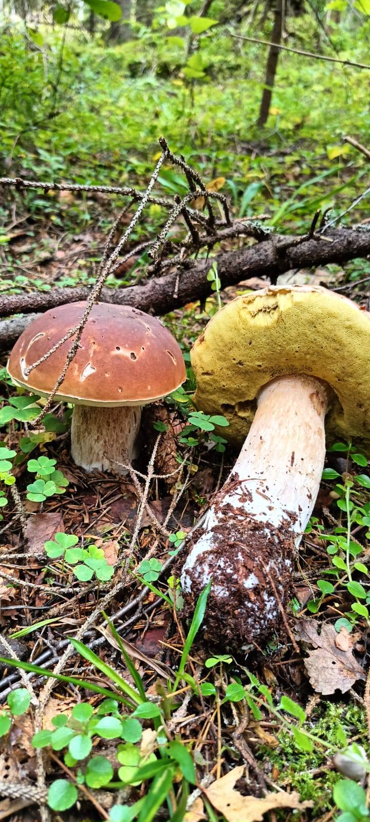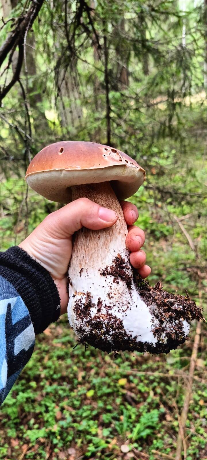 28.08.25. Традиционно в окрестностях деревни Быково. В этот день собирались с женой в Термоленд почилить в басиках и банях. Но я зачем-то с утра зашел на форум… В панике отменили все планы и уже поздновато, но устремились в леса – добирать уходящий слой белых. Что же по итогу. Машин повсюду едва ли не больше, чем в выходные. На заходе в наши места навстречу гордо проплыли две Нивы-покорительницы грязей. При заходе в лес моментально встретились с грибниками, что преждевременно похоронило надежды на непостыдный результат. А по итогу – полсотни белых (кроме тех, что оставили в лесу из-за червивости), всевозможных размеров, вплоть до гигантских, некоторые напоминают нарядный туесок с полусферой-крышкой. Причем, самые большие при переборке оказались не самыми червивыми. В ведро ушла четверть всего объема примерно. Кроме того, с десяток-полтора подосиновиков, польские в приличных количествах. Лисички по-прежнему есть, и еще лезут кнопки. Нашлись рыжики, черные грузди. Масленок желто-бурый полянами и кругами. В этот раз его не собирали и слава Богу – просто не утянули бы корзины, пришлось бы освобождать под белые. На фото представлены только белые как объект максимального внимания и одинокий подосиновик-альбинос. Лосиная муха ведет себя неприлично, но преимущественно в ельниках со мхами.