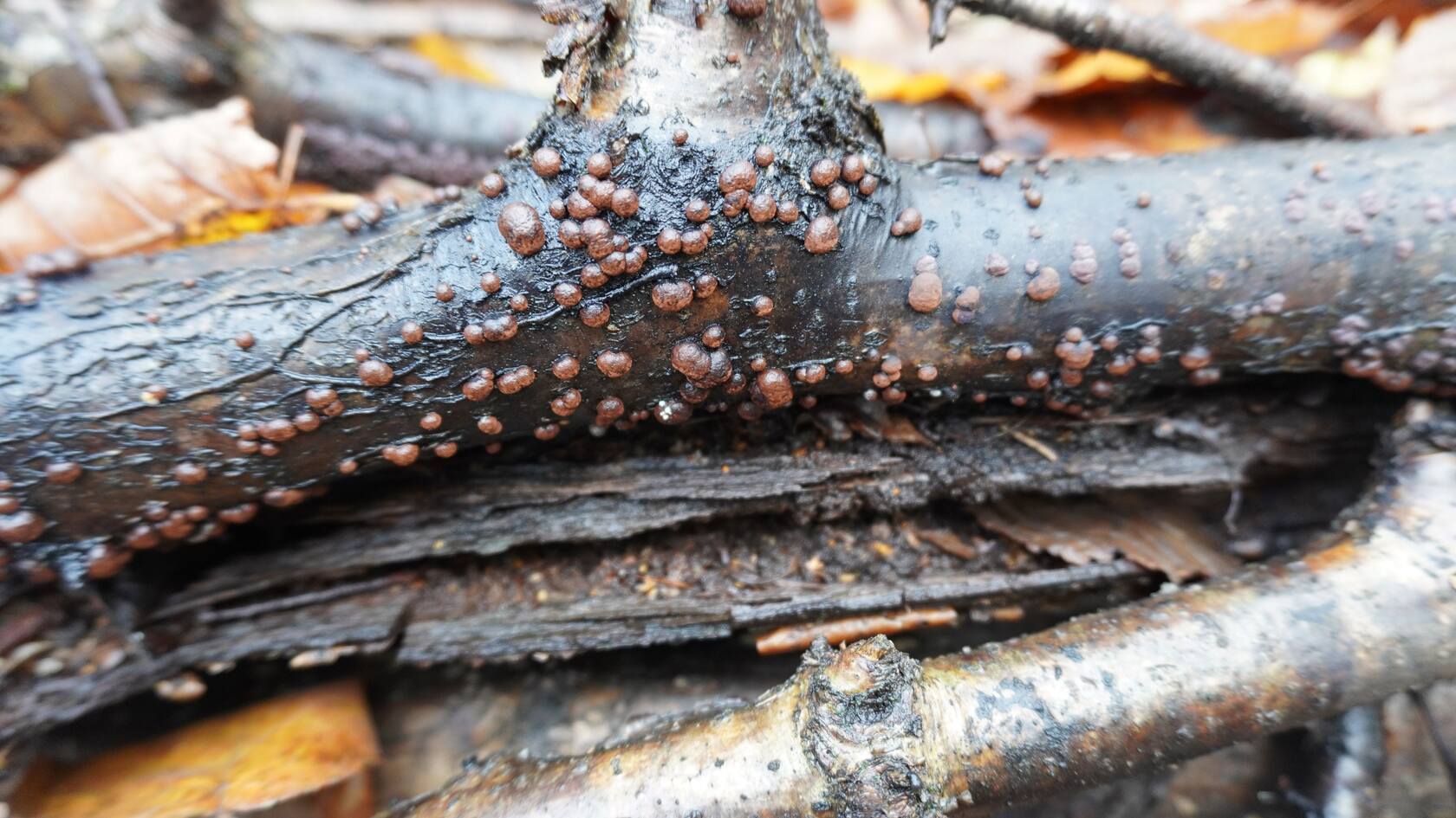 А на этой трухляшке-аскокорине и Гемитрихия(?) соседствуют.