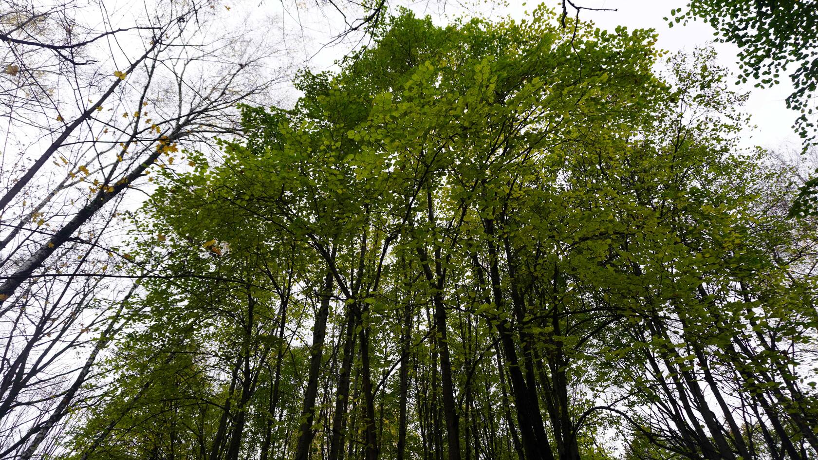 Неожиданный зеленый липовый колок. А под ногами листовой ковер, уплотнённый осенним дождём. Иногда мелькнут родоколлибии, остатки рядовок-говорушек, гигрофоров, мицен.